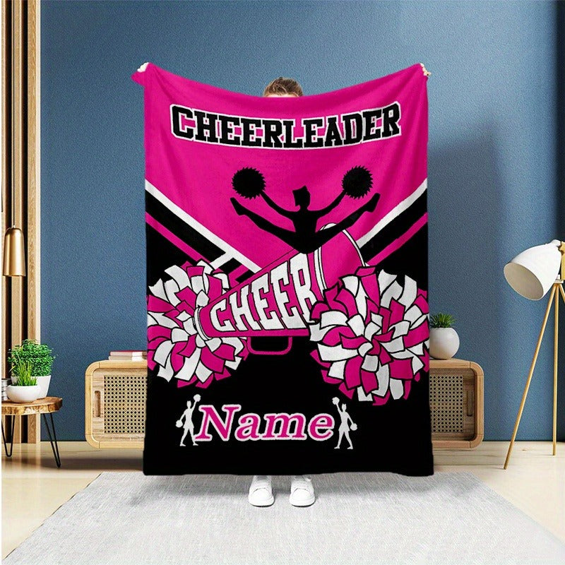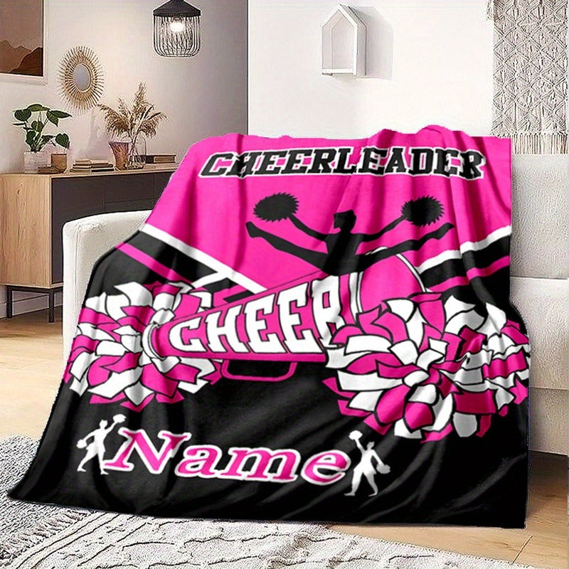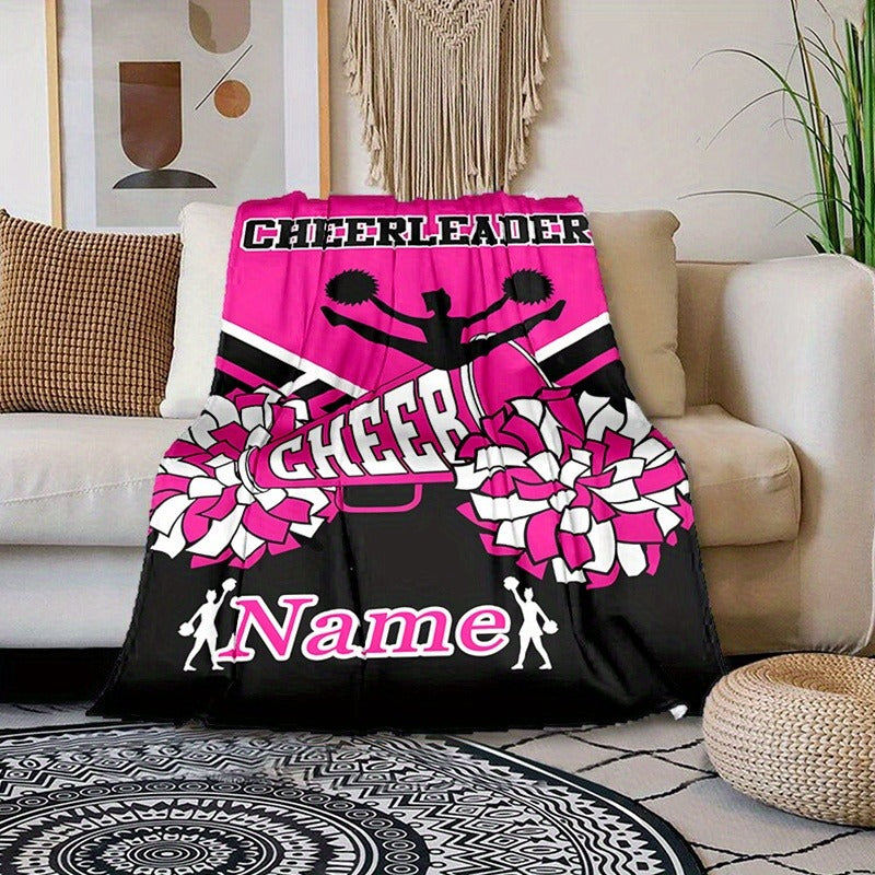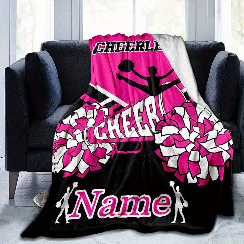 Customizable Cheerleader Fleece Blanket - Soft & Warm Pink and Black with Personalized Name