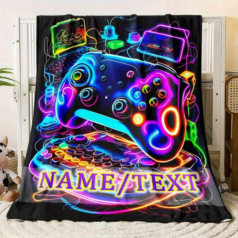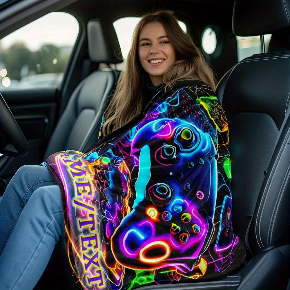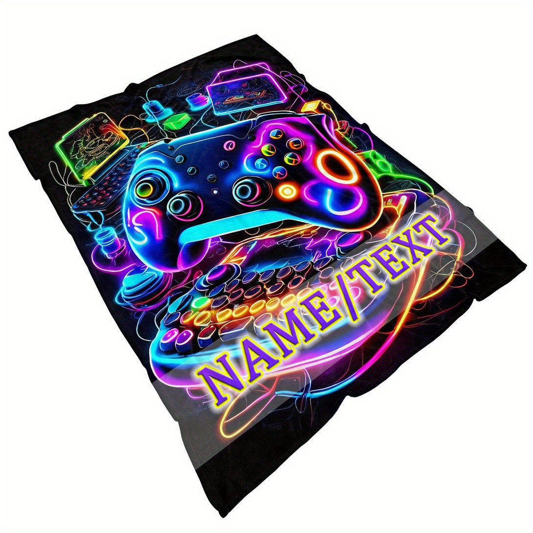Customizable Gamer's Flannel Blanket with Vibrant Neon Gamepad Design