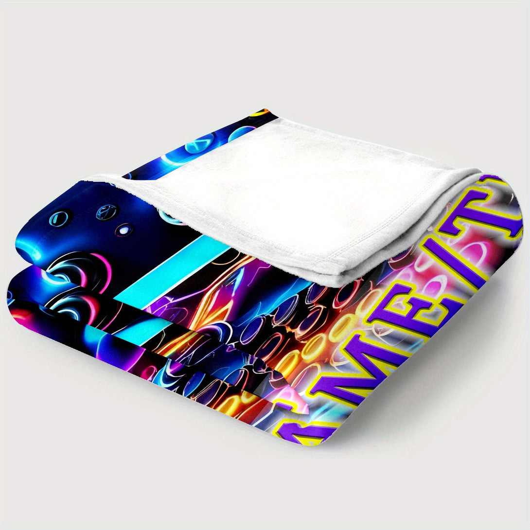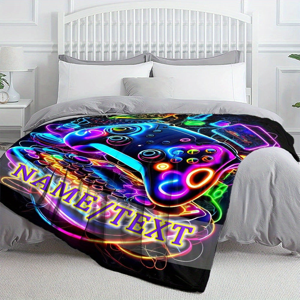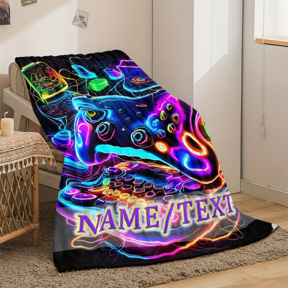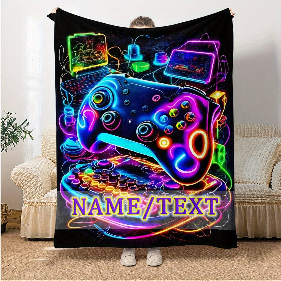 Customizable Gamer's Flannel Blanket with Vibrant Neon Gamepad Design