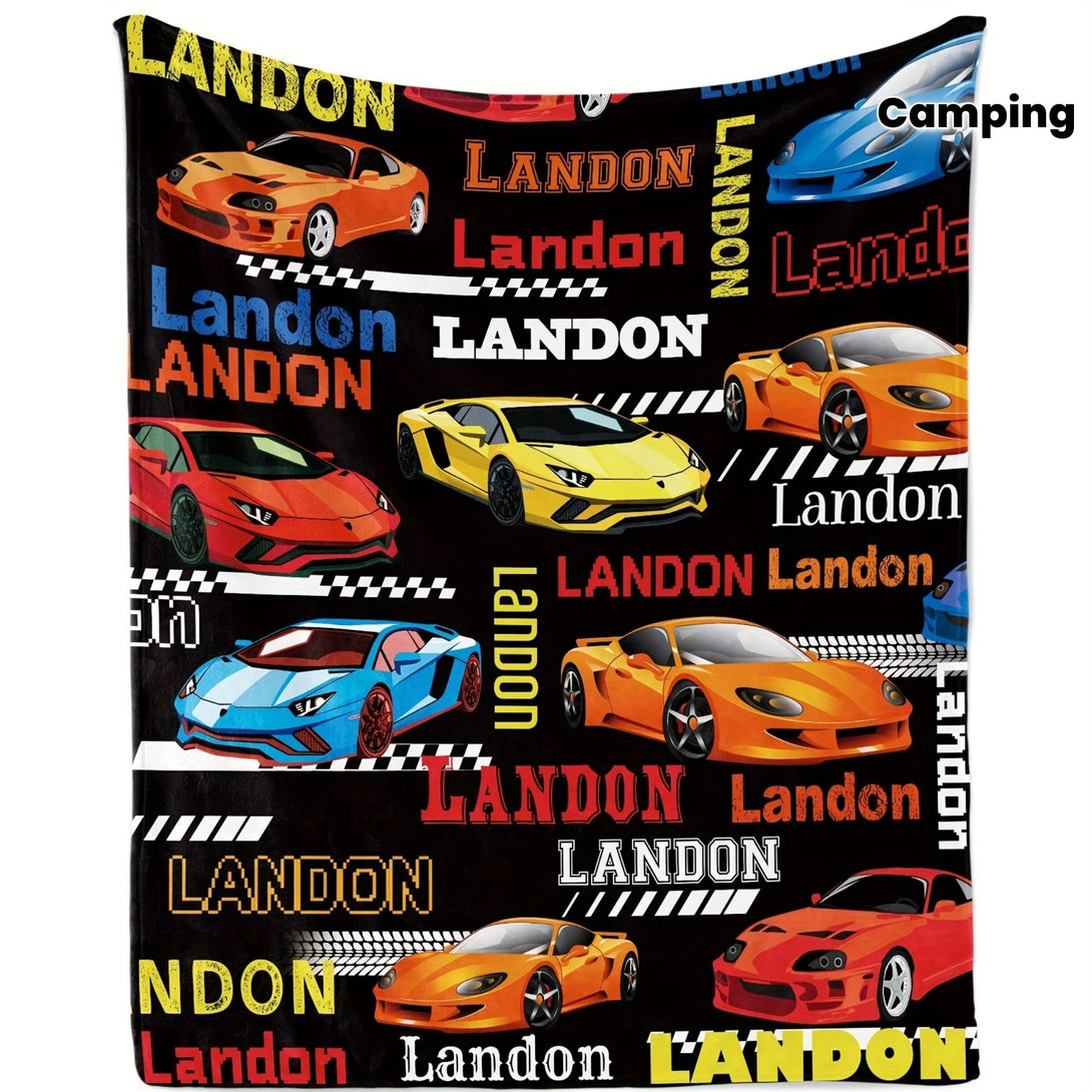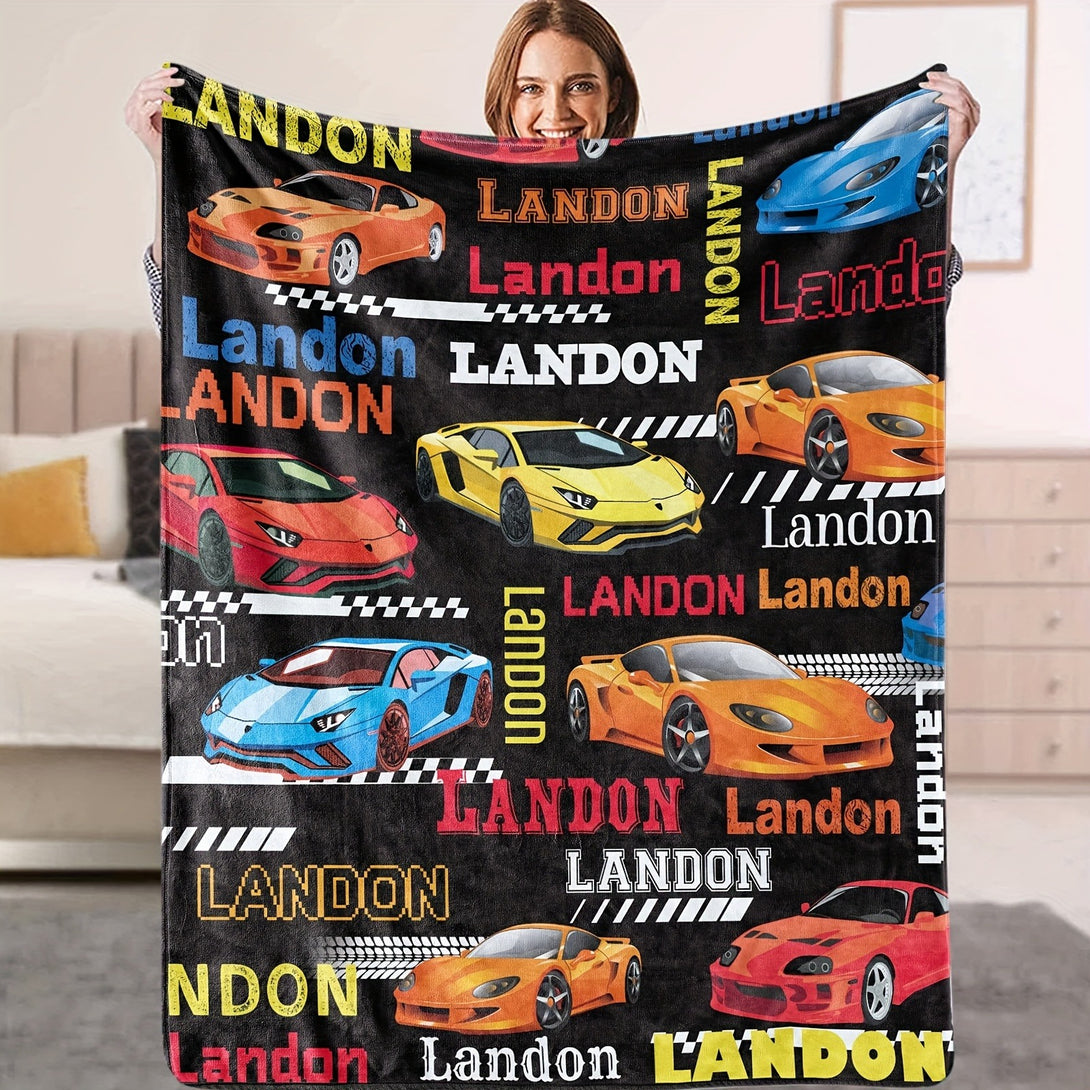 Customizable Landon Cartoon Sports Car Flannel Blanket