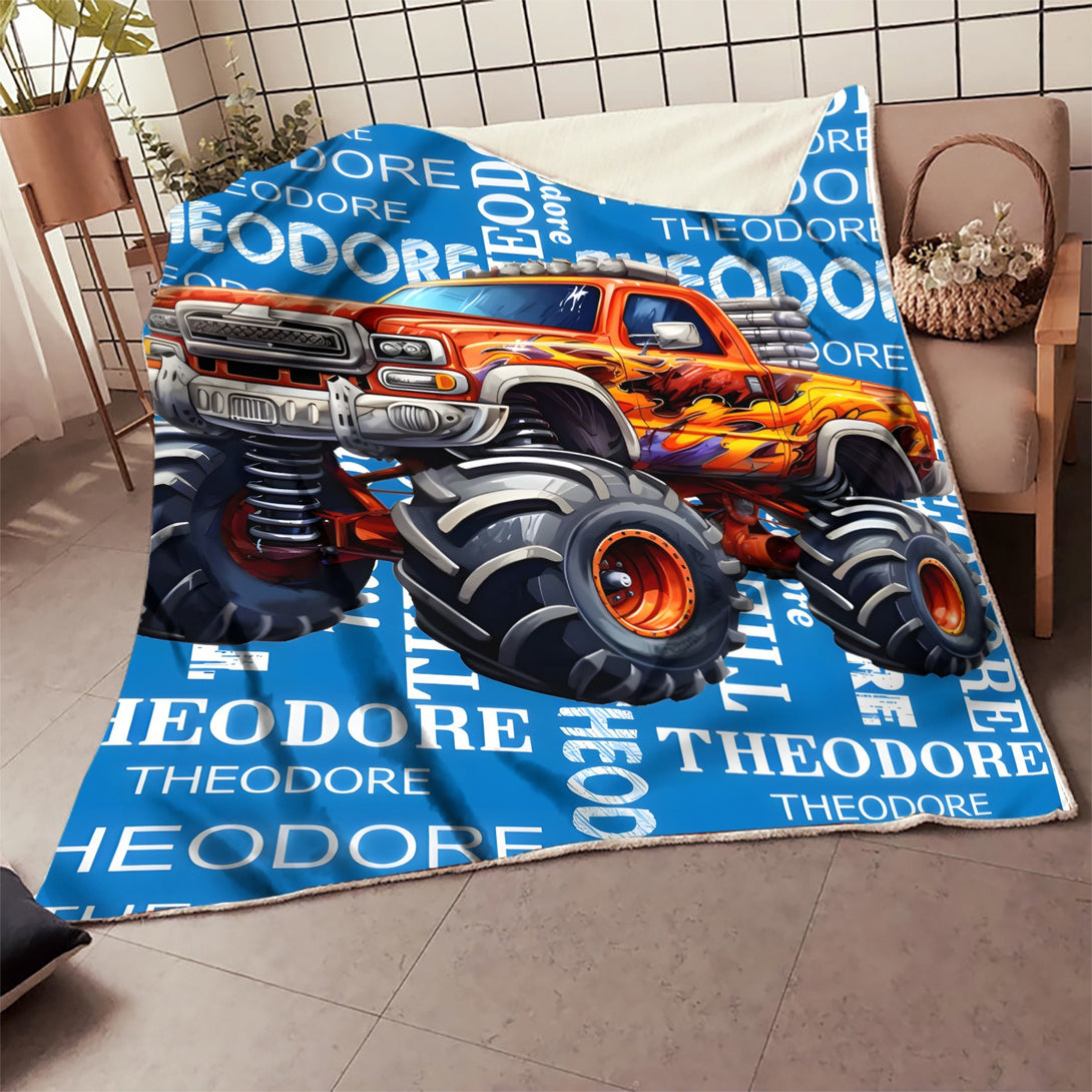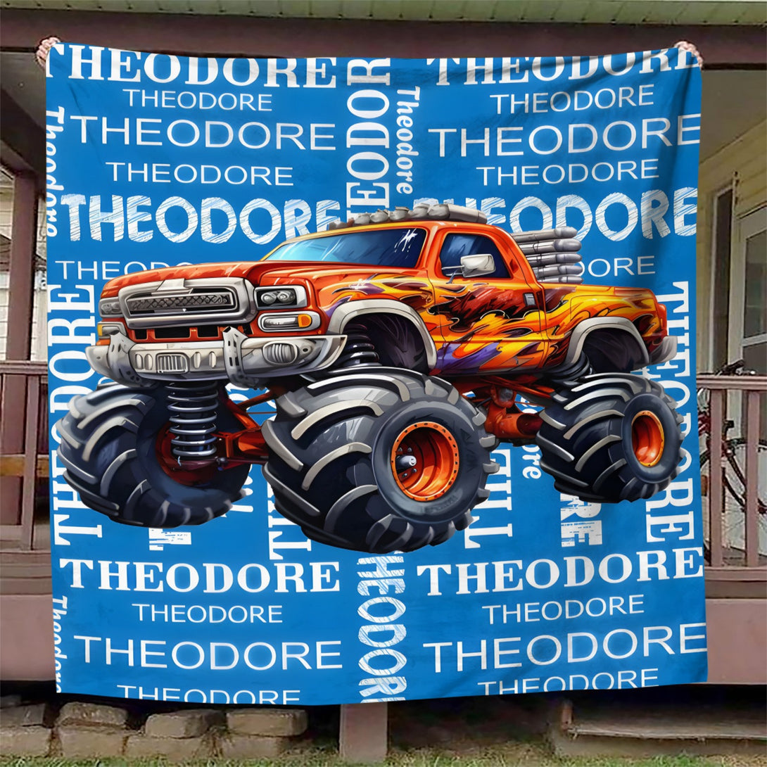 Customizable Monster Truck Flannel Throw Blanket