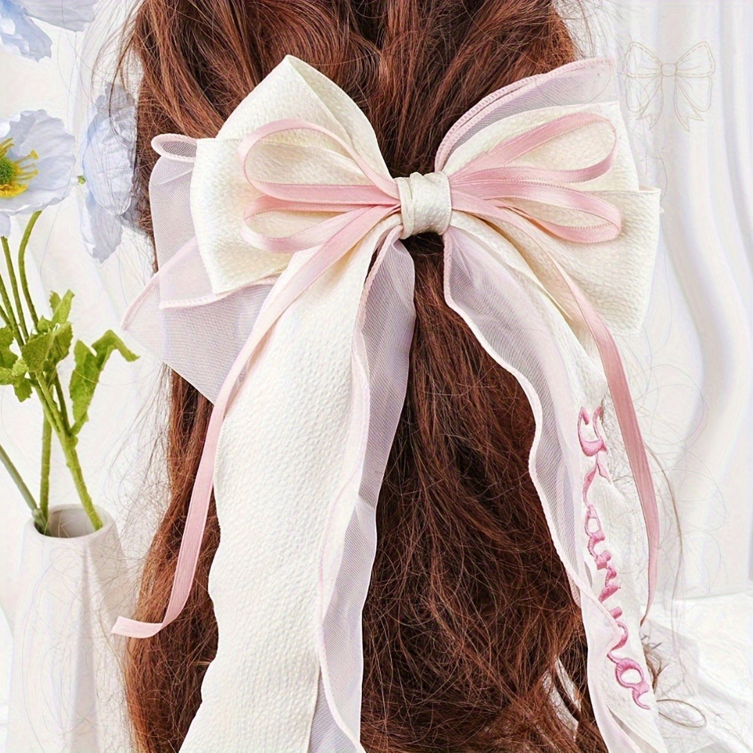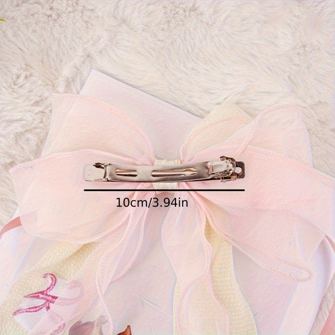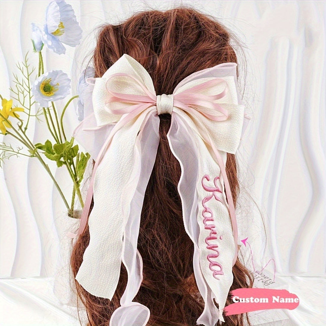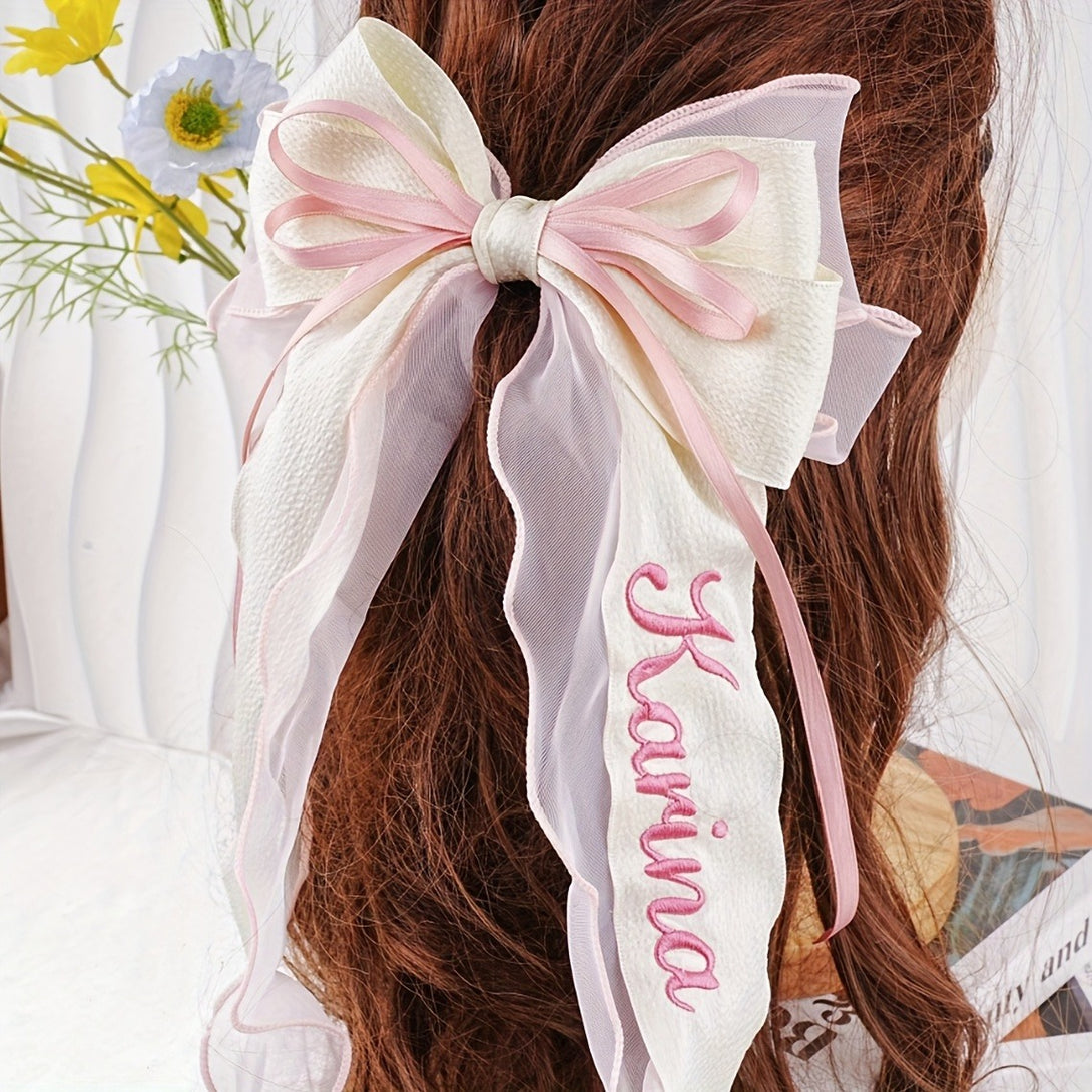 Customizable Pink Bow Hair Clip for - Personalized Name Embroidery