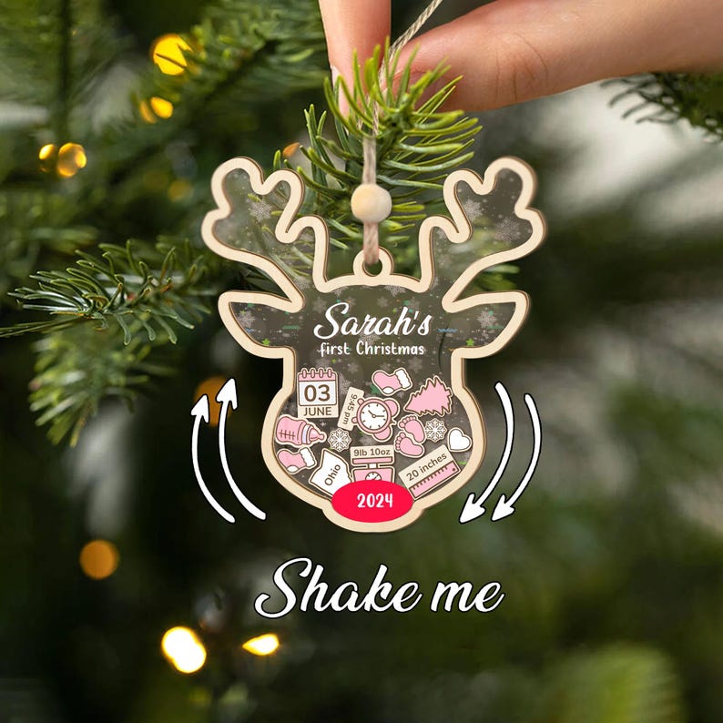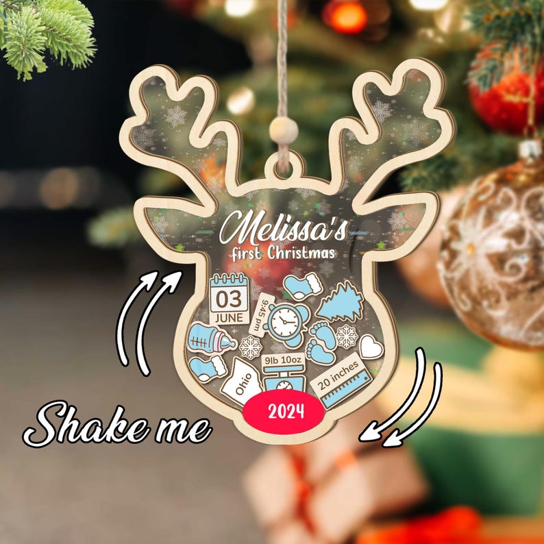 This Christmas 4D Shaker set includes Engraved Charms moving inside a 3-layered Onesie Shaped acrylic plexiglass & wood ornament for added sound & visual that brings joy to both children and adults. Great for pregnancy announcements. Click on the Customize Now Button and start personalizing your own Ornament and celebrating baby's first Christmas.