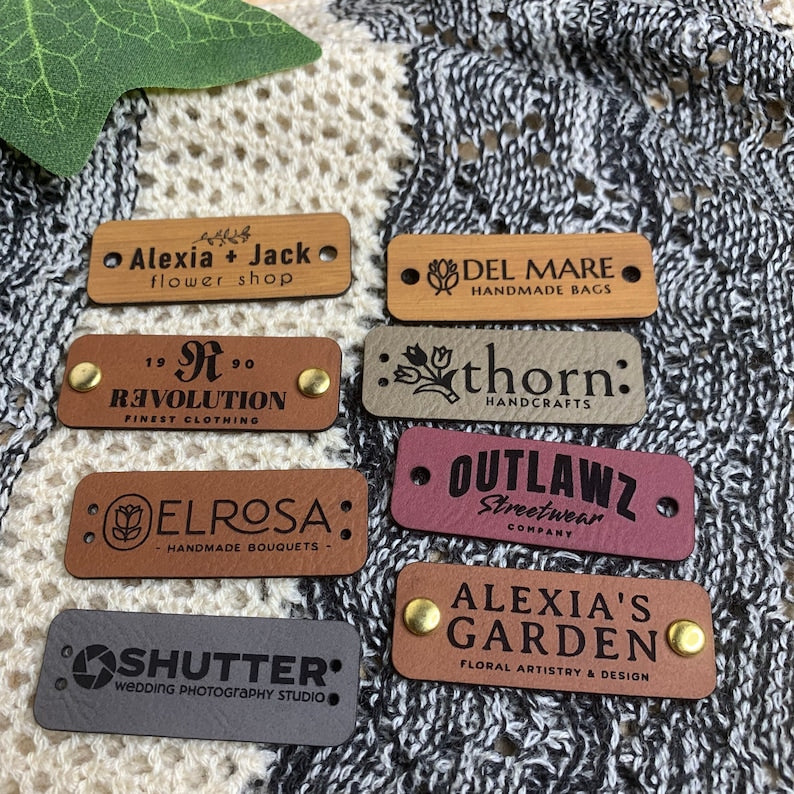 Add a touch of sophistication and personalization to your handmade creations with our high-quality 2 x 0.75 inch faux leather tags. Made with exquisite craftsmanship, these tags are the perfect addition to your handmade accessories, including bags, hats, dog collars and leashes, and pouches. Show off your brand's unique style by adding these elegant tags that highlight the fact that your items are handmade with care