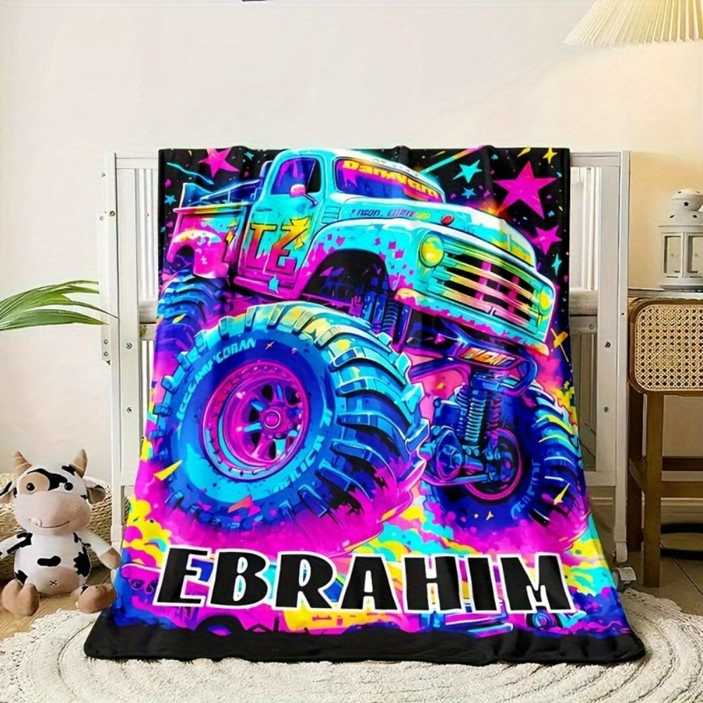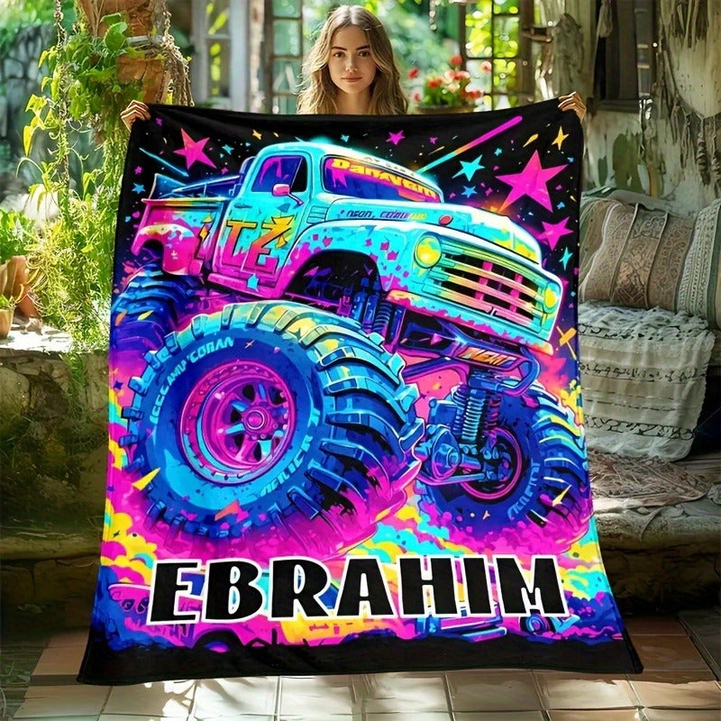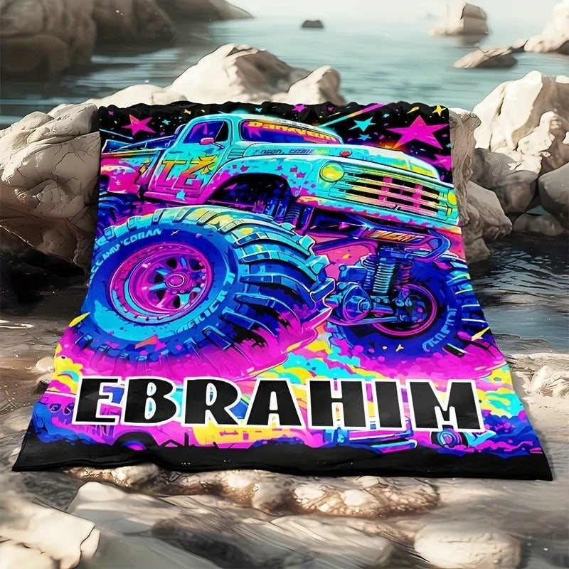 Customized Colorful Monster Truck Print Plush Blanket