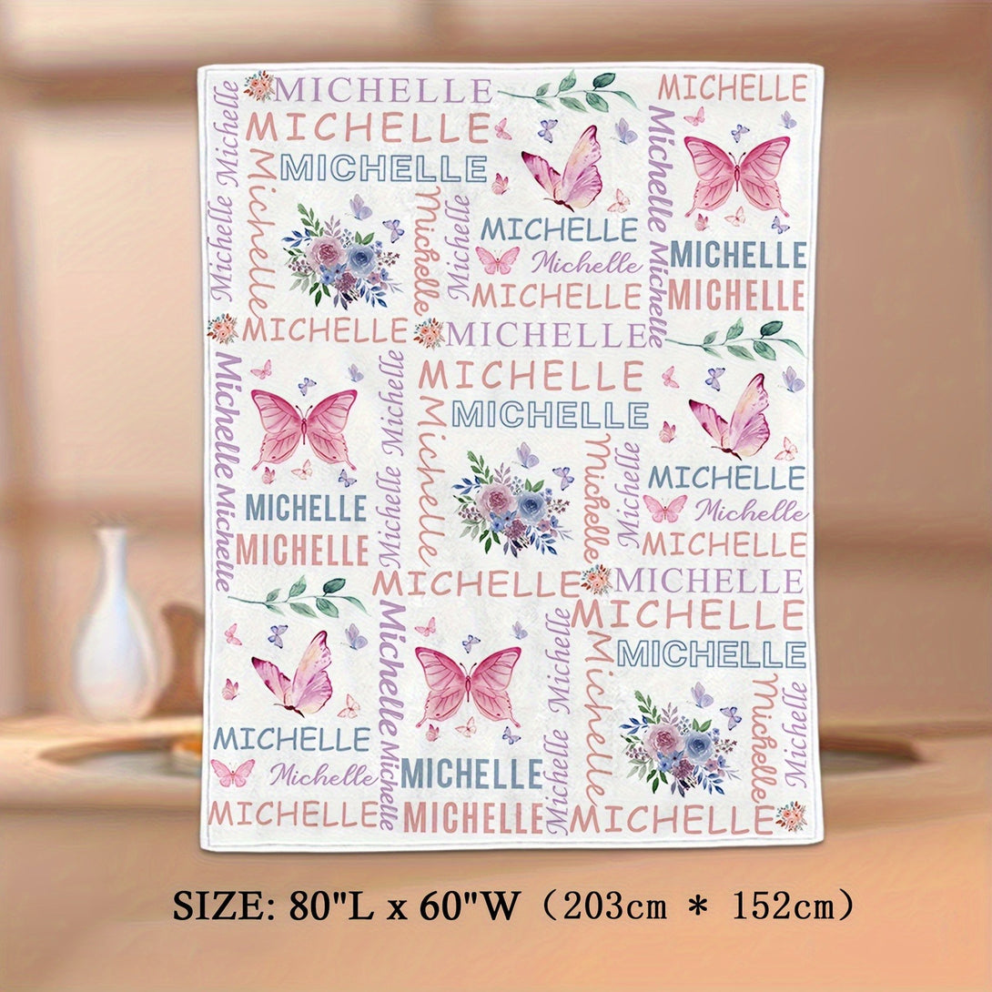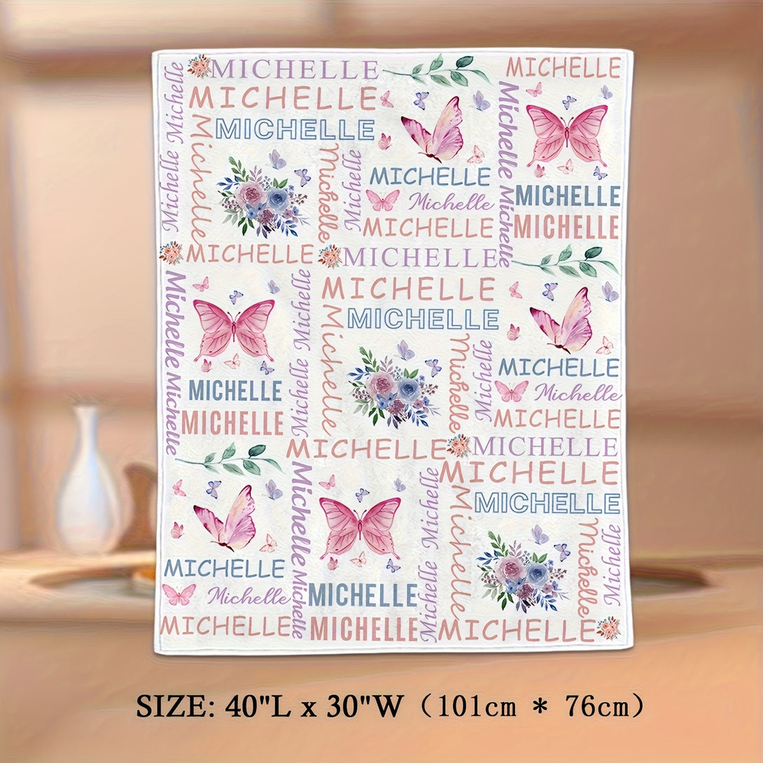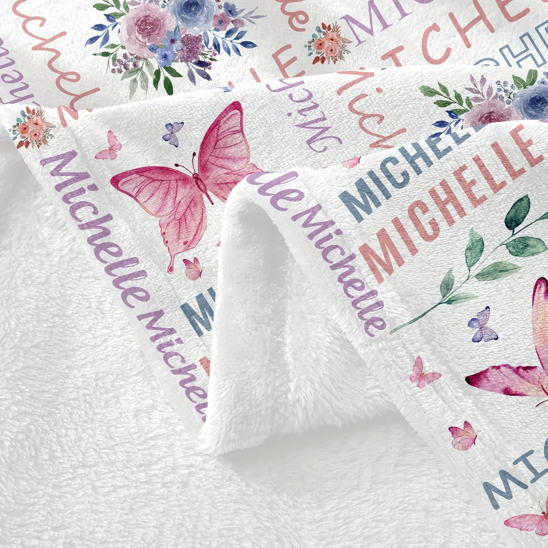 Customized Flannel Blankets with Names, Flower Butterfly Patterned Blankets