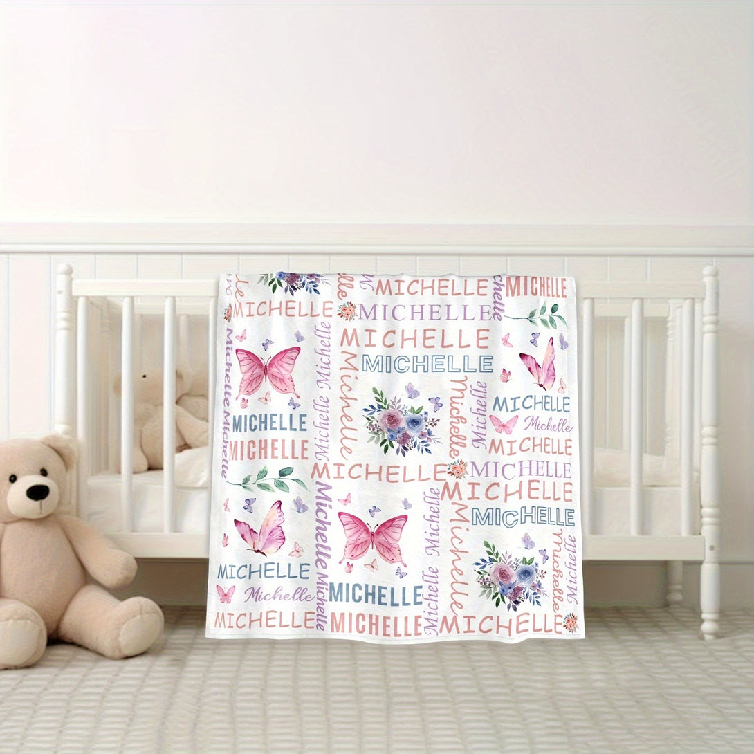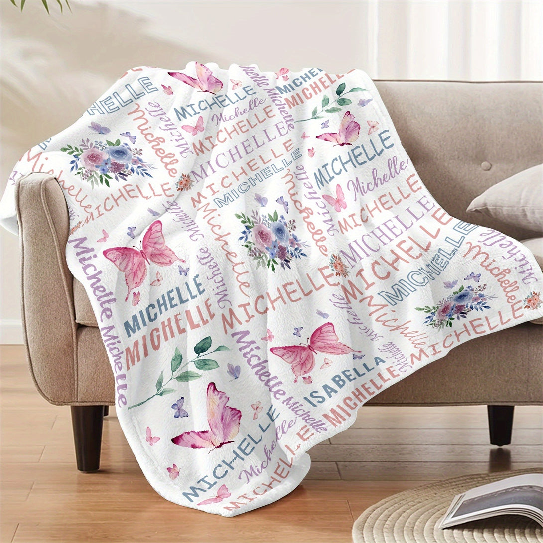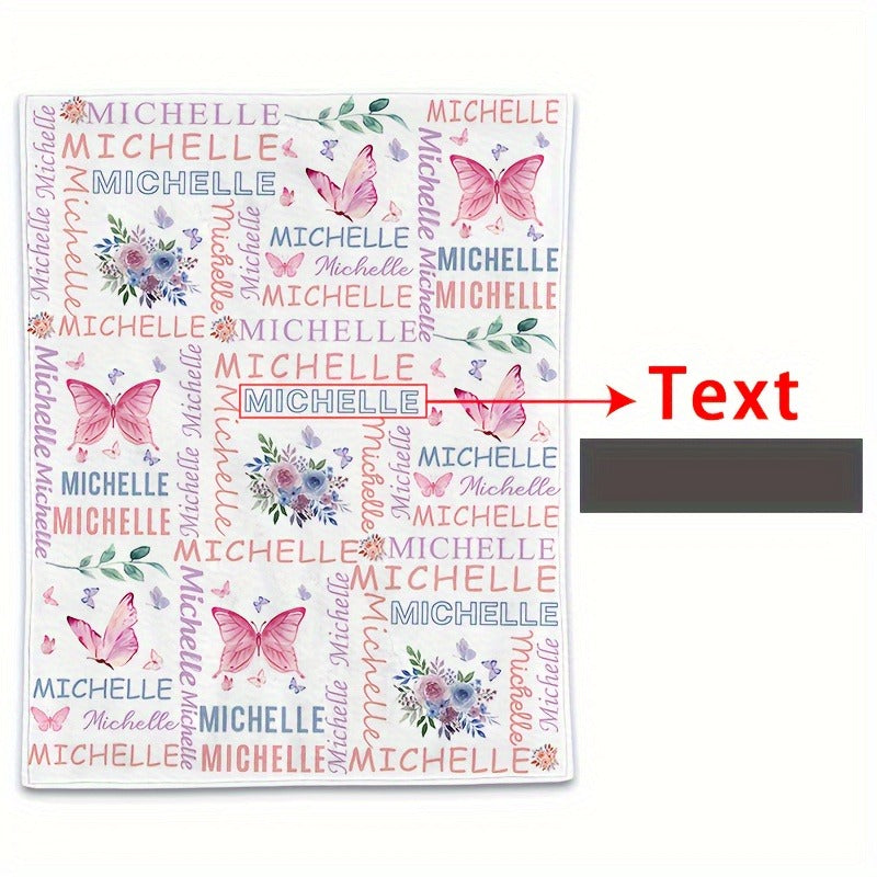 Customized Flannel Blankets with Names, Flower Butterfly Patterned Blankets
