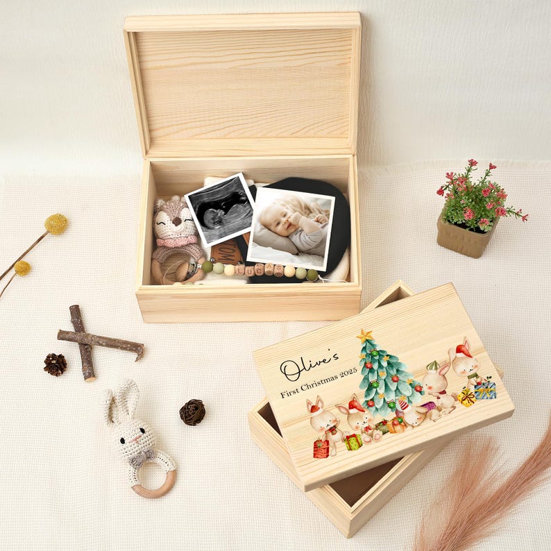 Perfect Gift: Ideal for the baby's first Christmas. This personalized box is a heartfelt and loving gift that captures the essence of childhood milestones.