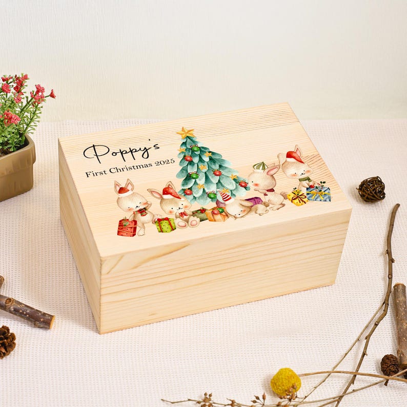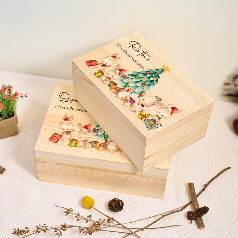 Made with love, this personalized box is perfect for holding special items from your baby’s first year — like hospital bracelets, their first Christmas outfit, tiny socks, a favorite toy, or heartfelt notes from family. Designed in an adorable, festive style, it’s a wonderful blend of decoration and deep sentimental value.