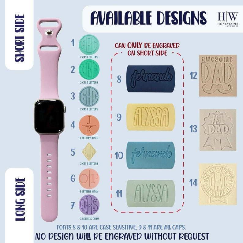 Etched with a high tech laser engraver to produce quality details on each and every band.