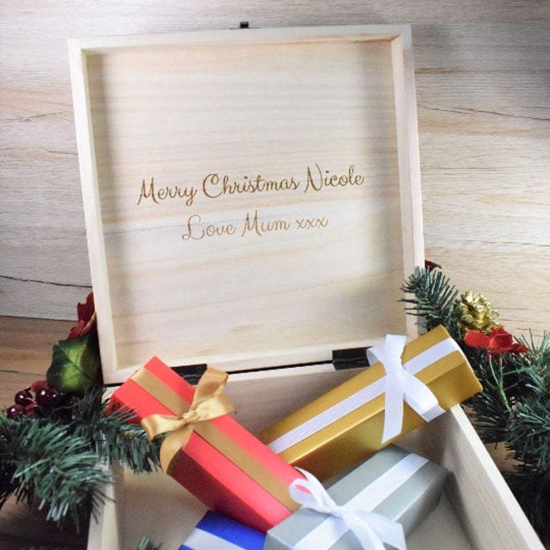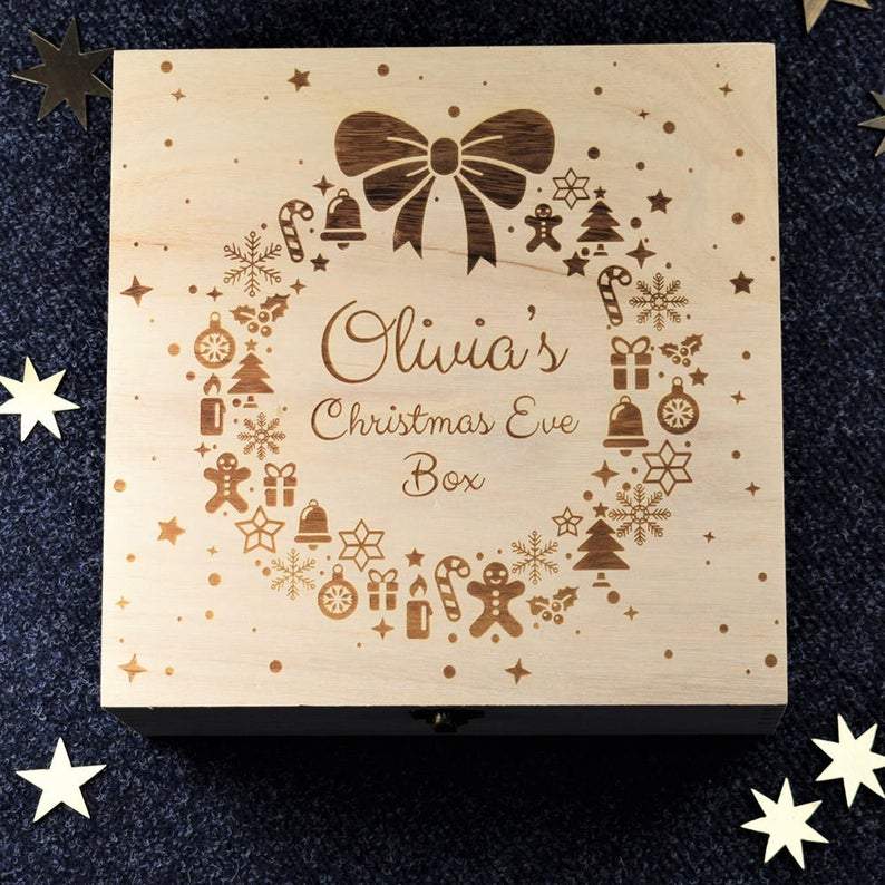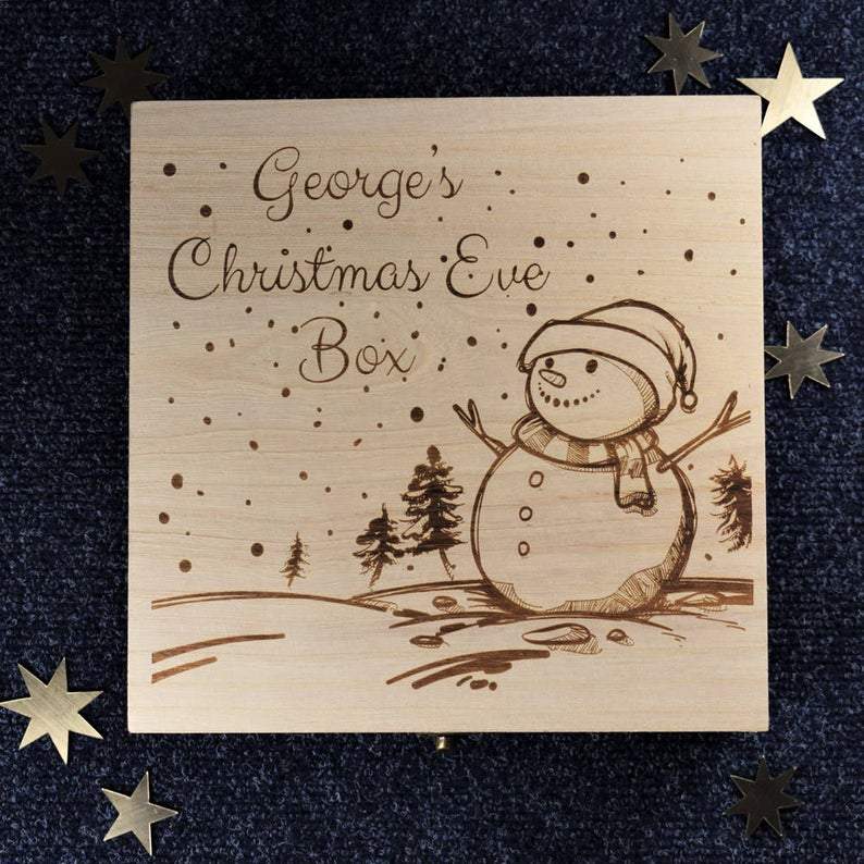 Our Christmas Eve boxes are the perfect way to get your child excited for the big day this festive season. The box is engraved with a traditional Christmas picture of a snowy outdoor scene and snowman. Our wooden boxes are all designed and engraved in house meaning we can work with you to create a product you will love and if you have any requests our helpful team are always available to assist you.