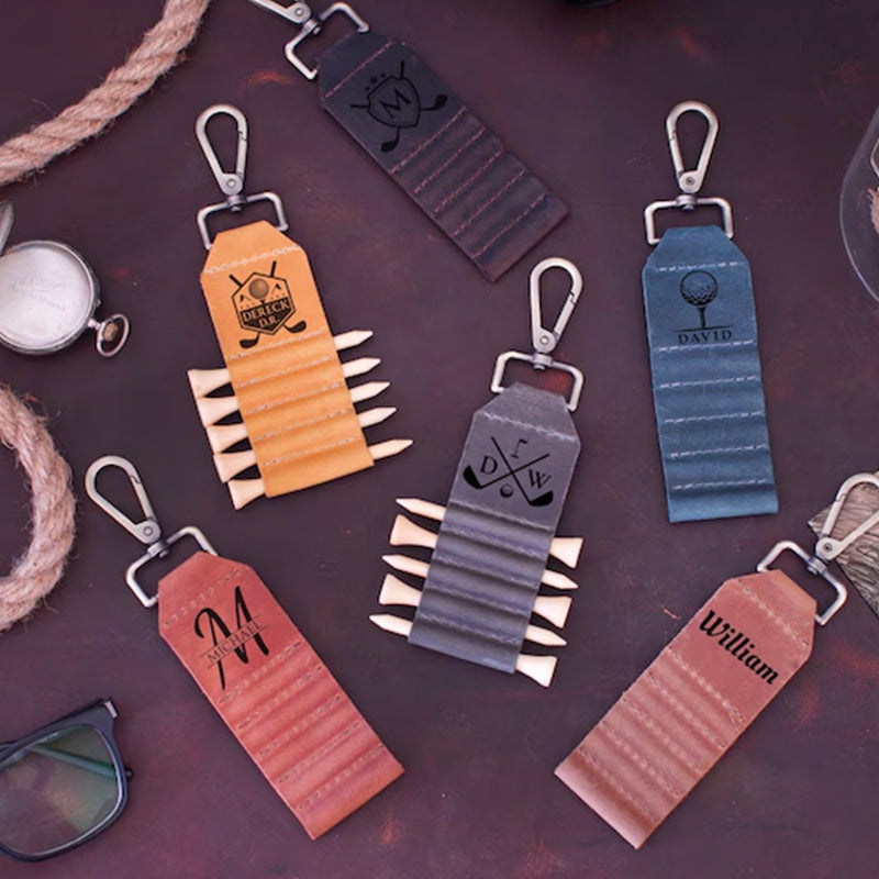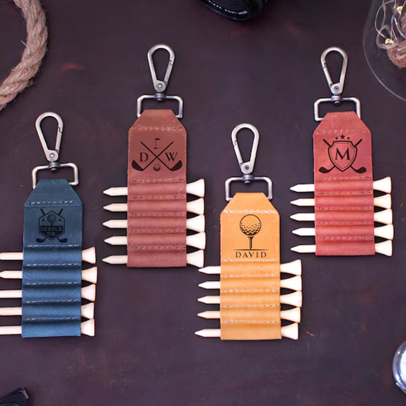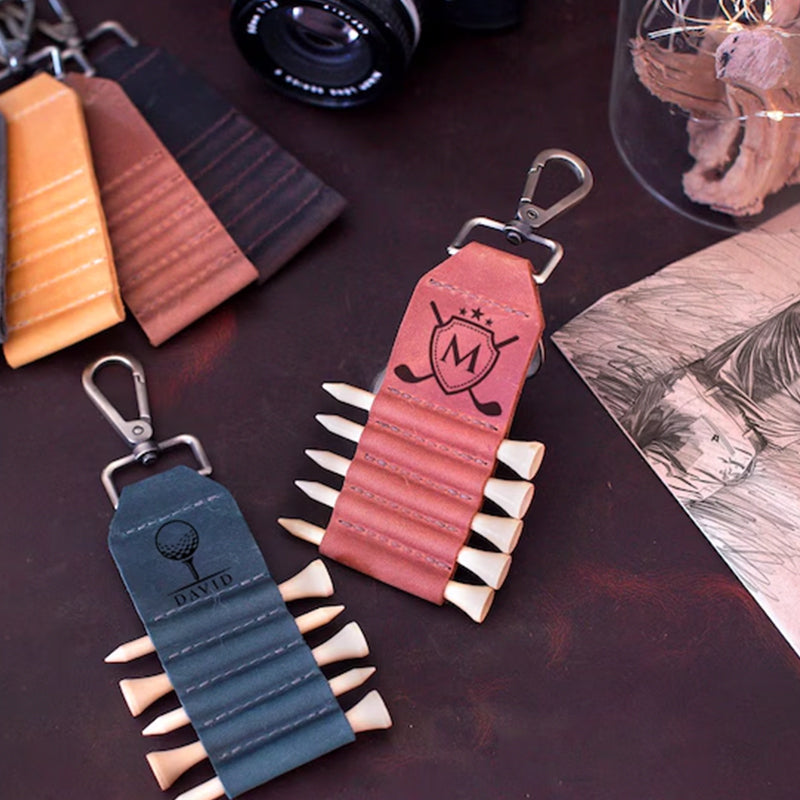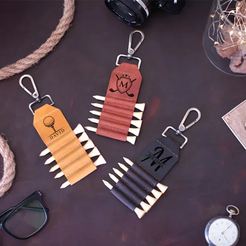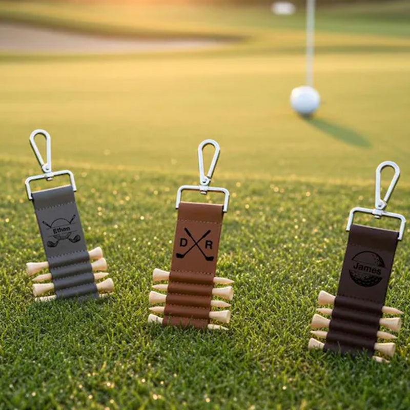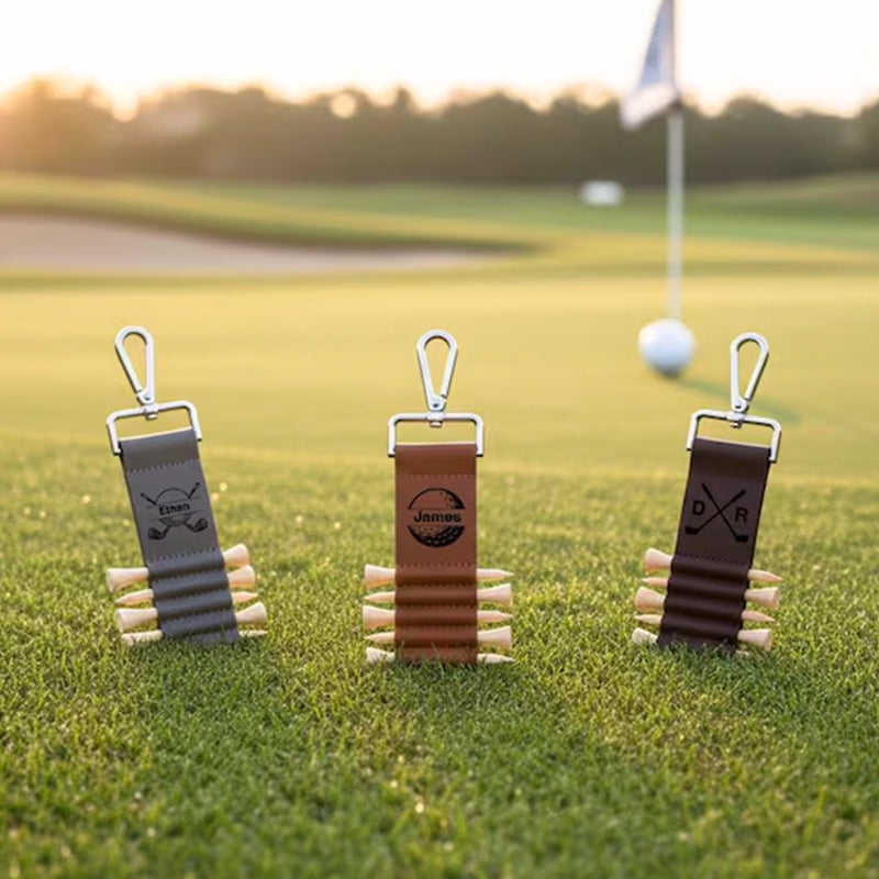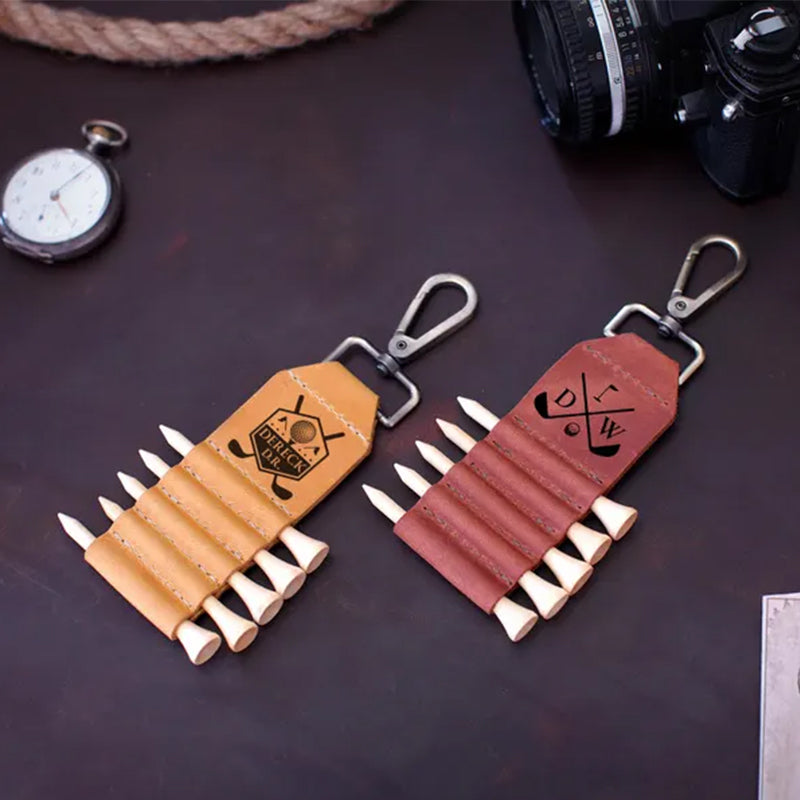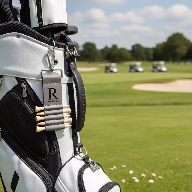 Engraved Leather Golf Bag Tag, Personalized Golf Tee Holder