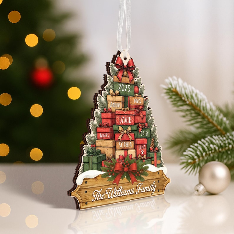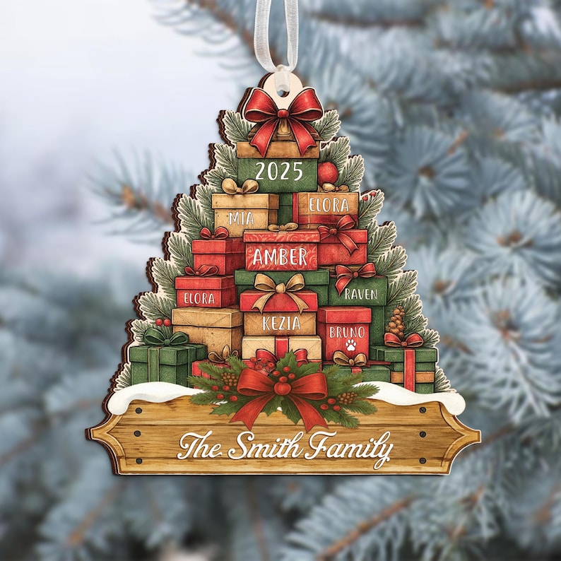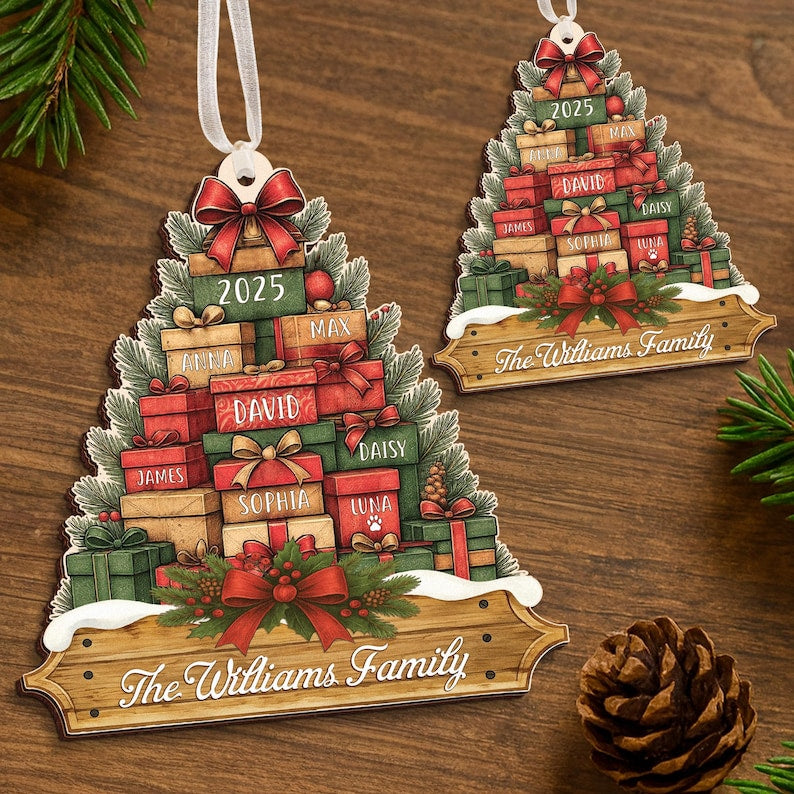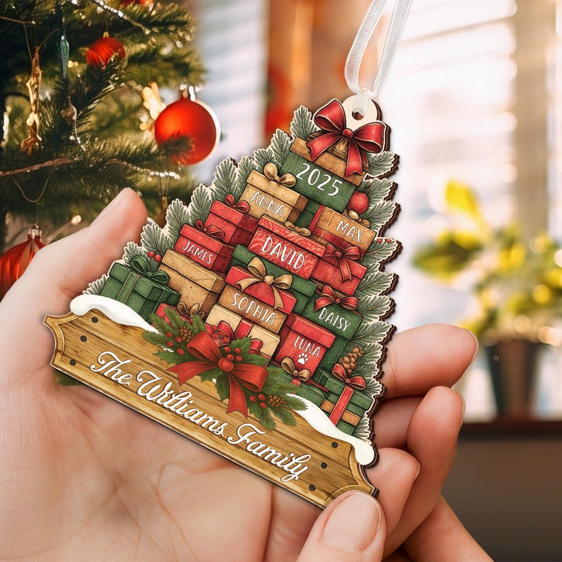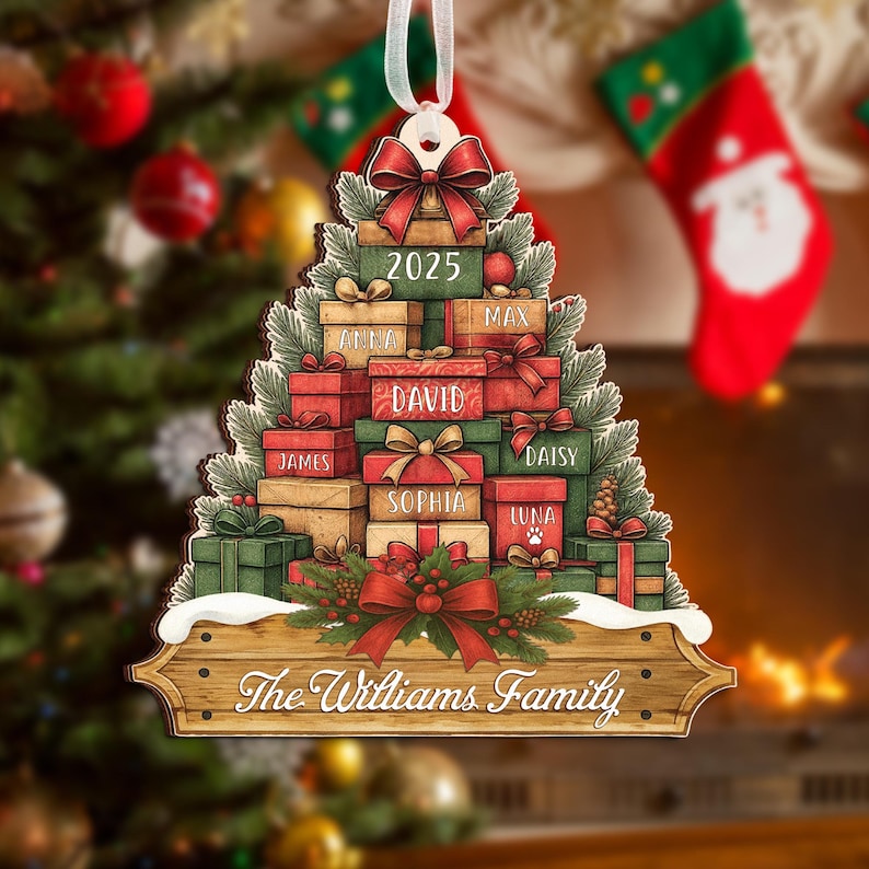 Family Christmas Ornament 2025, Personalized Stacked Gifts Family Ornament, Christmas Tree Family Name, Family Ornament, Xmas Family Gift