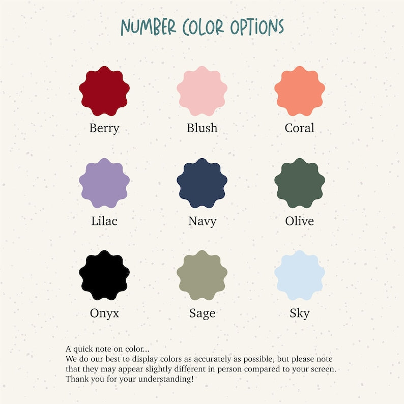 - Pick your number and desired color with font choice