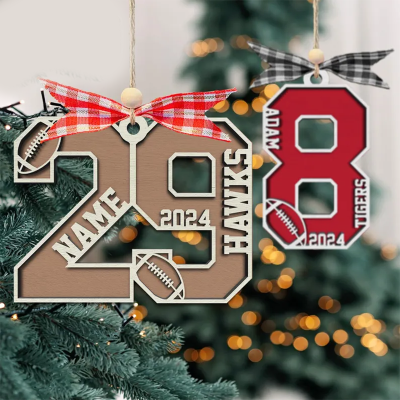 Football Number Christmas Ornament, Football Gifts, Custom Football Number Christmas Ornament 2025, Personalized Football Ornaments
