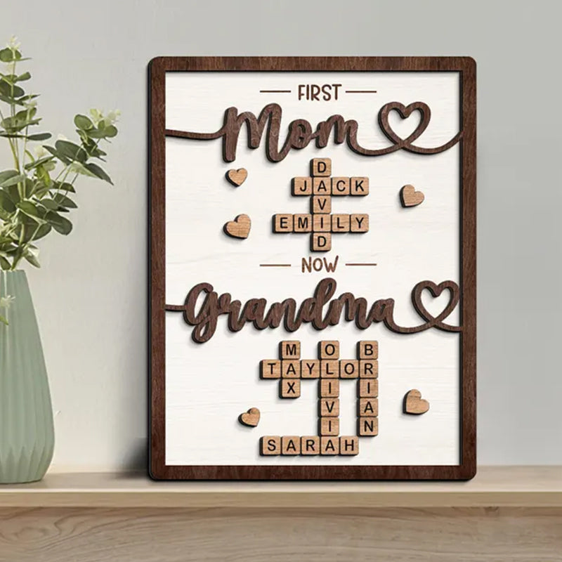 Celebrate the love and connection between family members with this custom wooden name puzzle sign! Each sign is handcrafted with high-quality wood, featuring the names of your family arranged in a unique crossword-style design. This makes a perfect home décor piece and a sentimental gift for parents, grandparents, and loved ones.