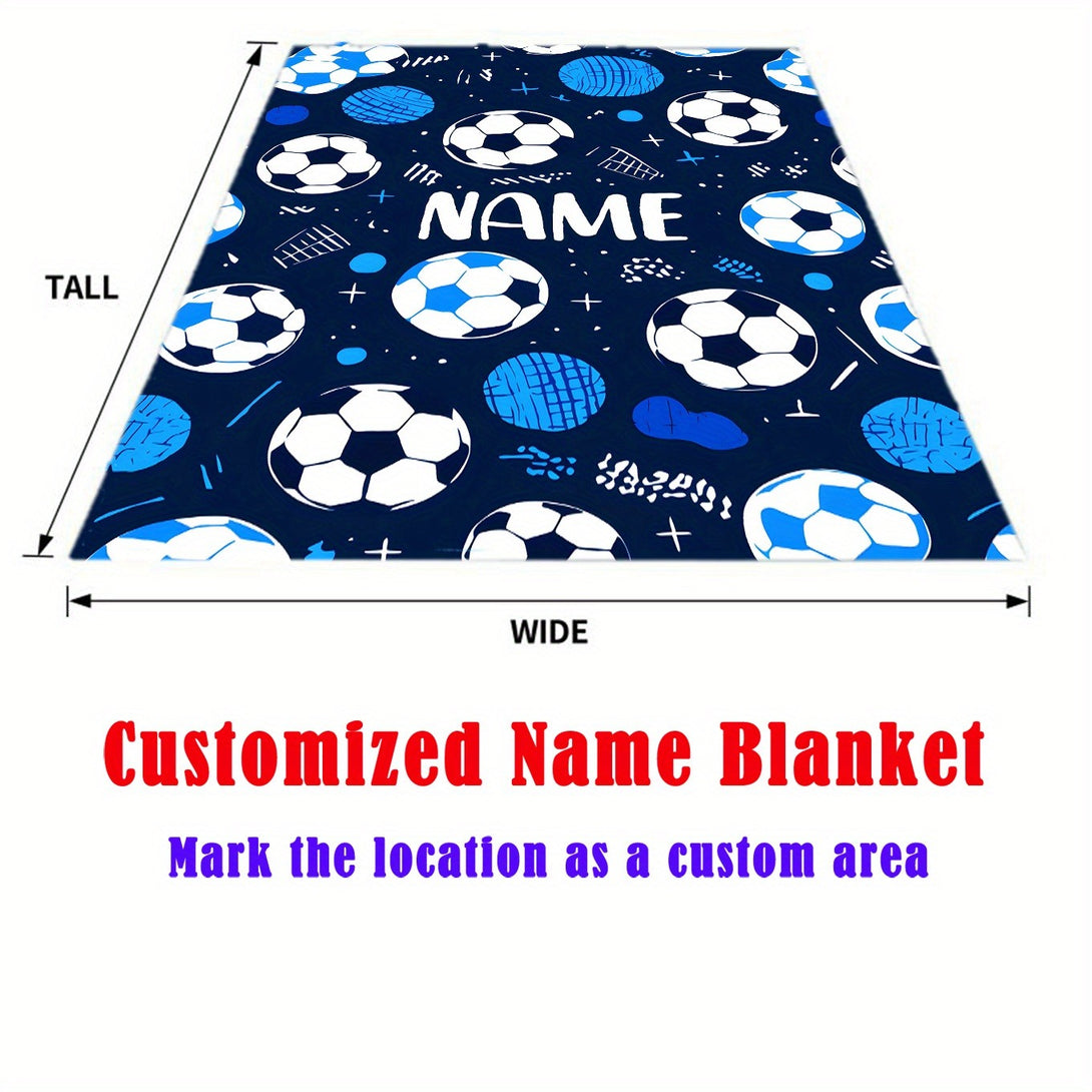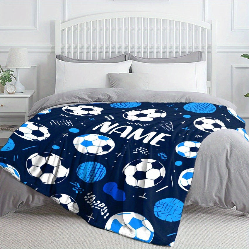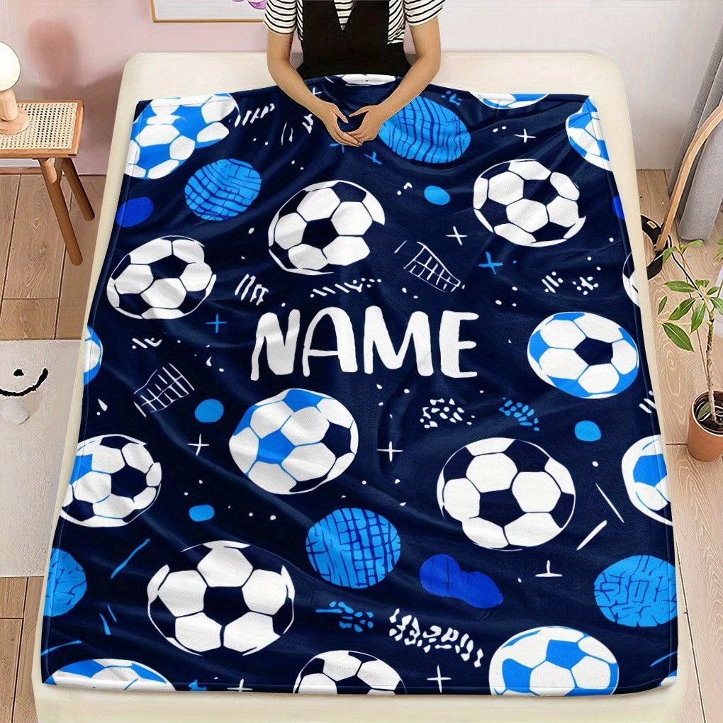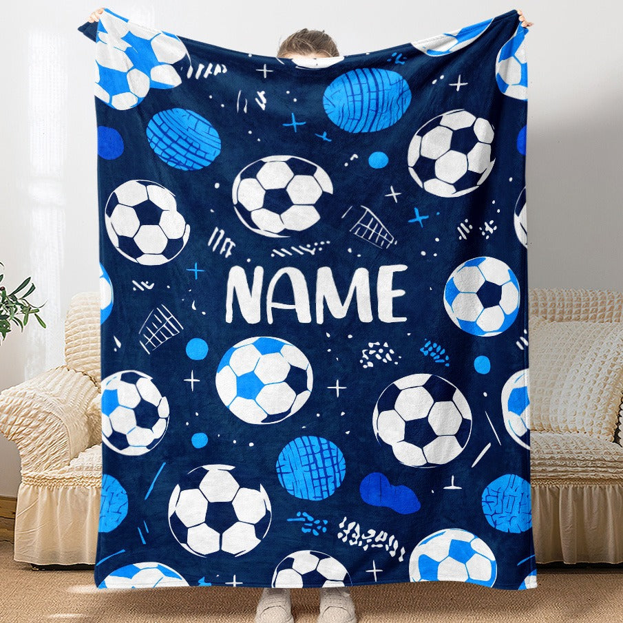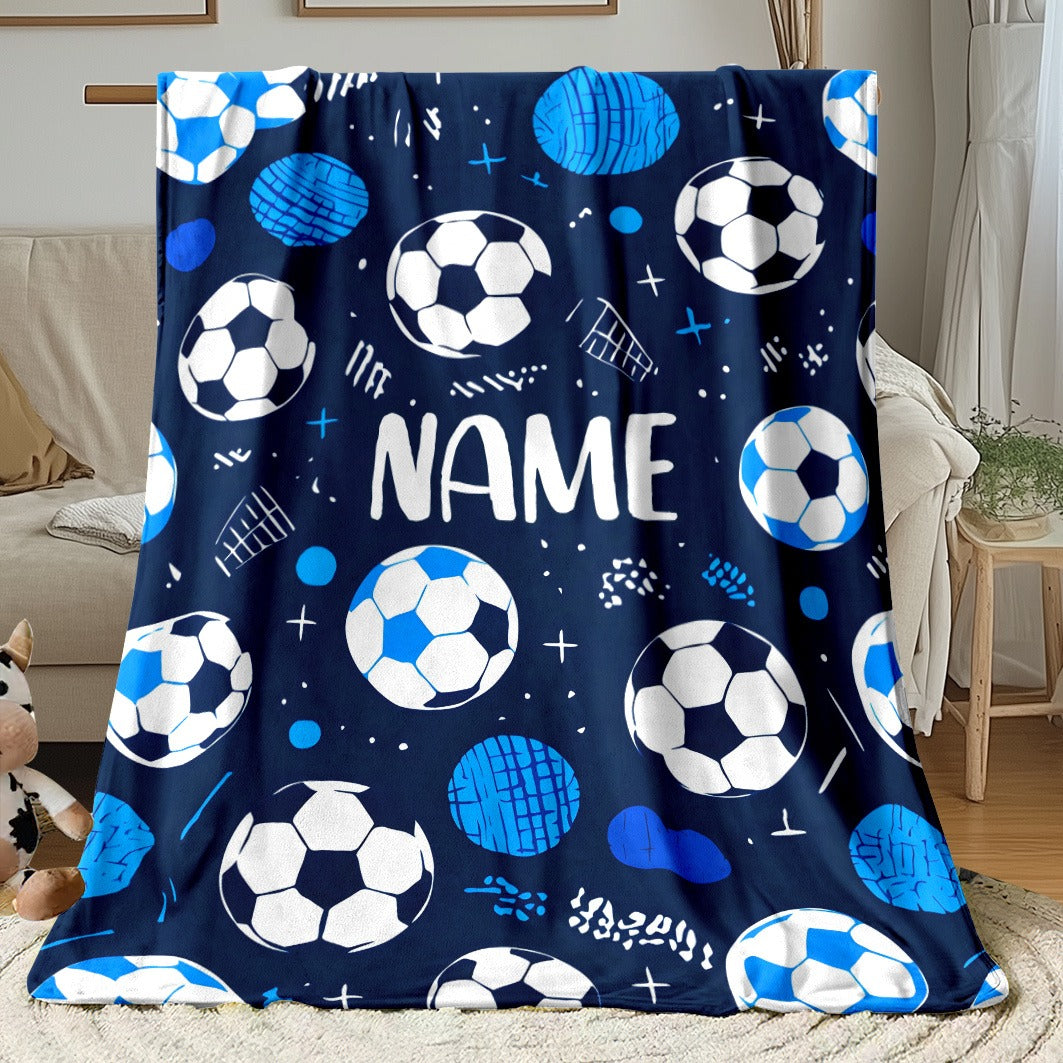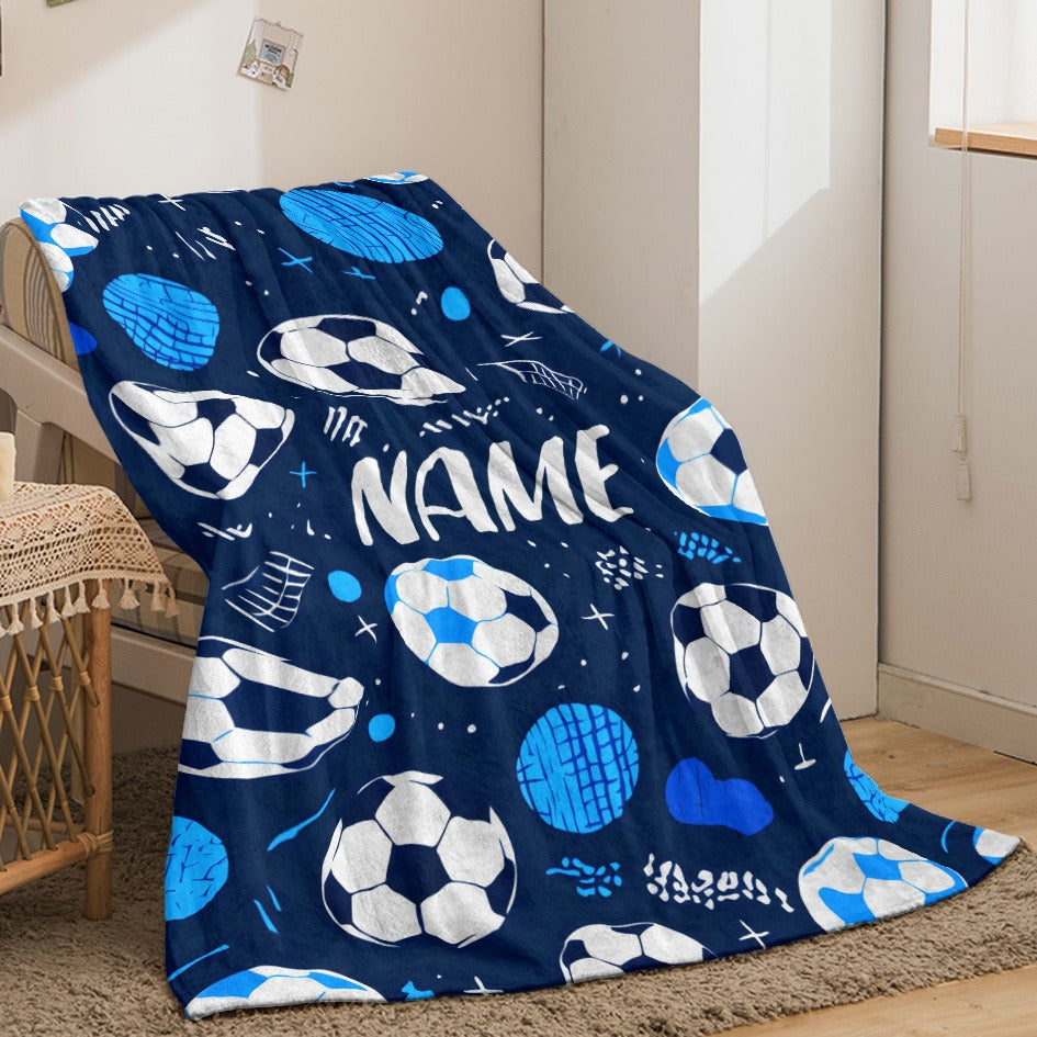 Glam Style Custom Name Football Print Flannel Throw Blanket