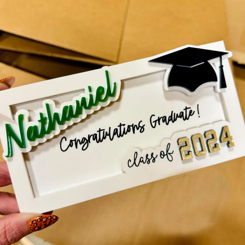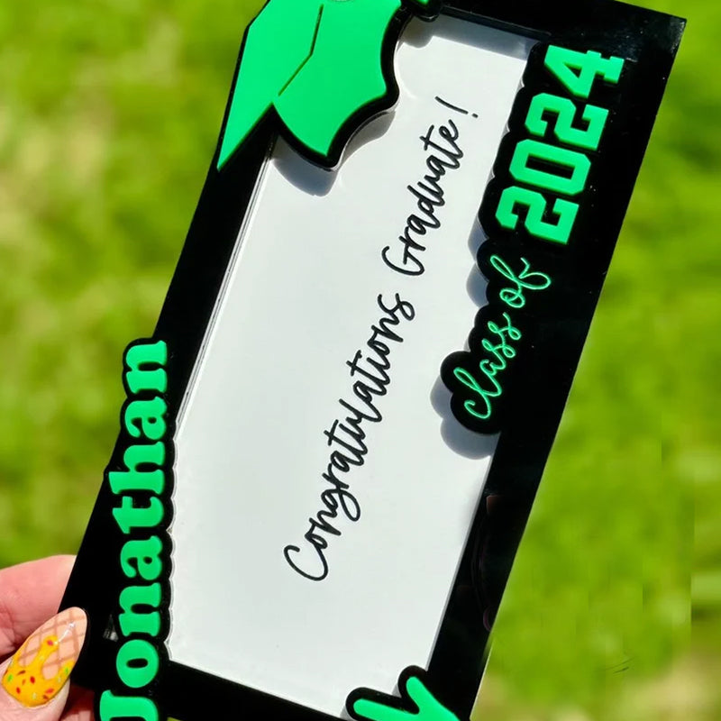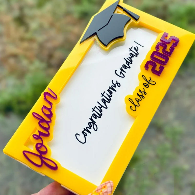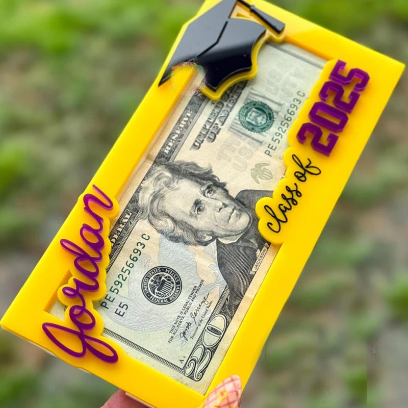 These make the perfect graduation gift. They are sized to fit money and will hold about 10 bills easily. Once graduation is over you can repurpose it as a photo holder.