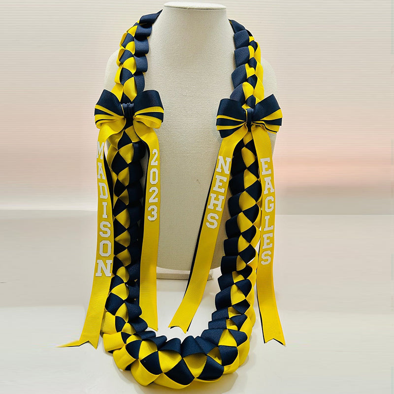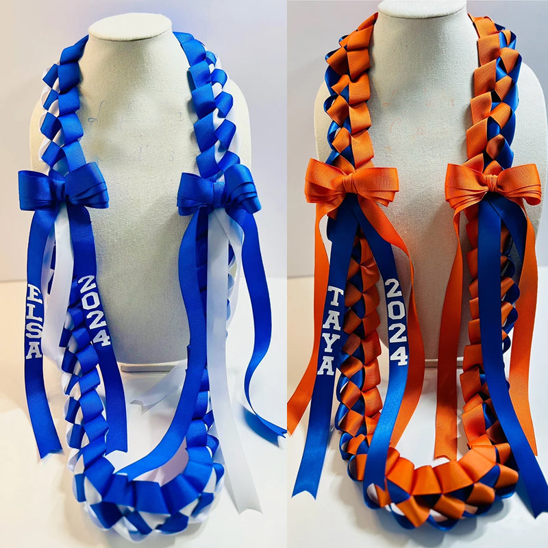 Two Toned Graduation Lei with bows/Your choice of school colors,Grad name and Year