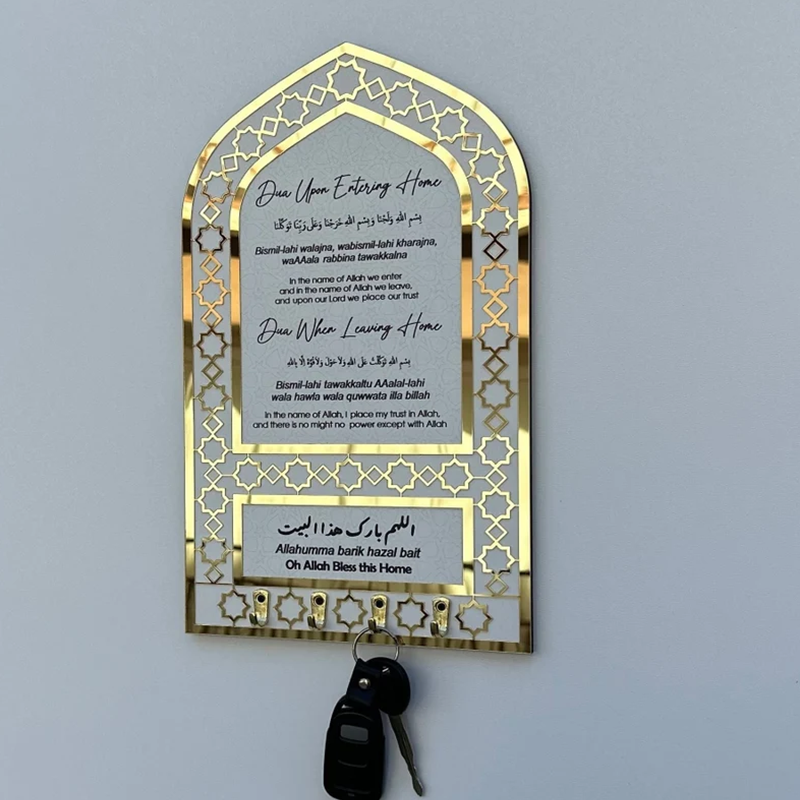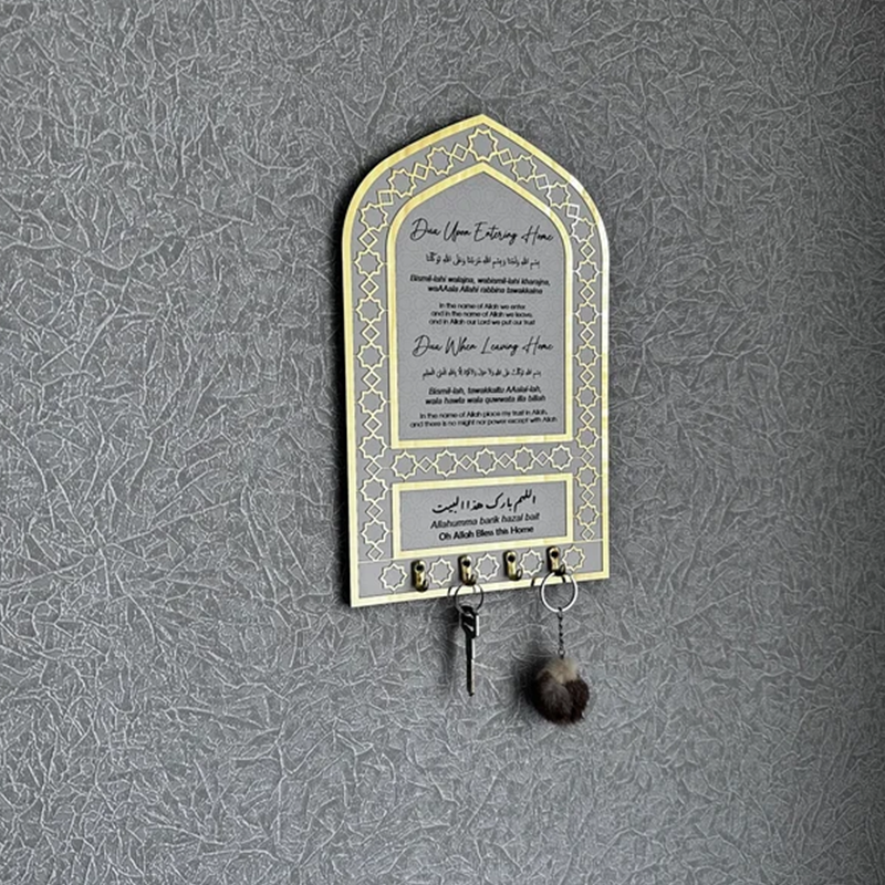 Get ready to attract all the attention with Key Holder, Dua for Entering and Leaving Home. Ideal as Islamic design wall art, Ramadan Decor, Islamic gifts, Eid gifts, Muslim gifts or Islamic housewarming. By gifting this Islamic wall art to your loved ones, you can make them happy and make them remember Allah.
