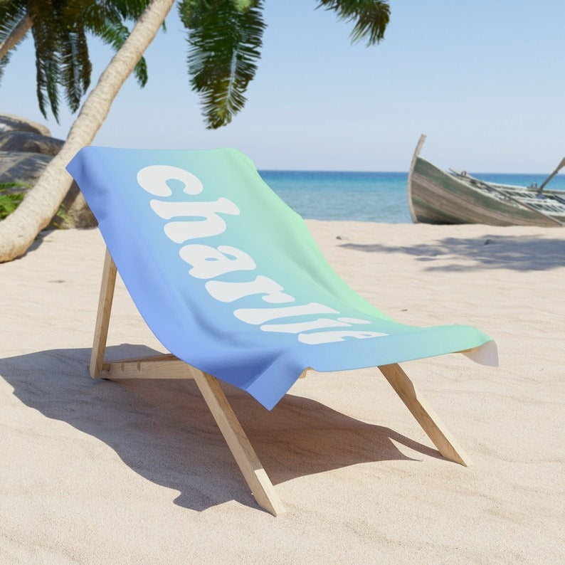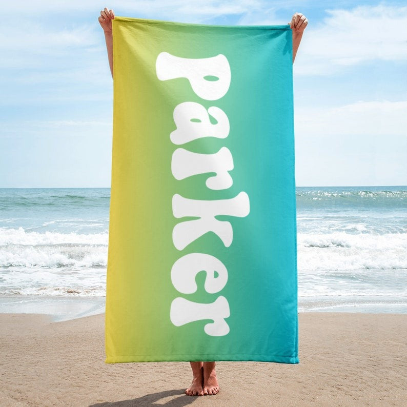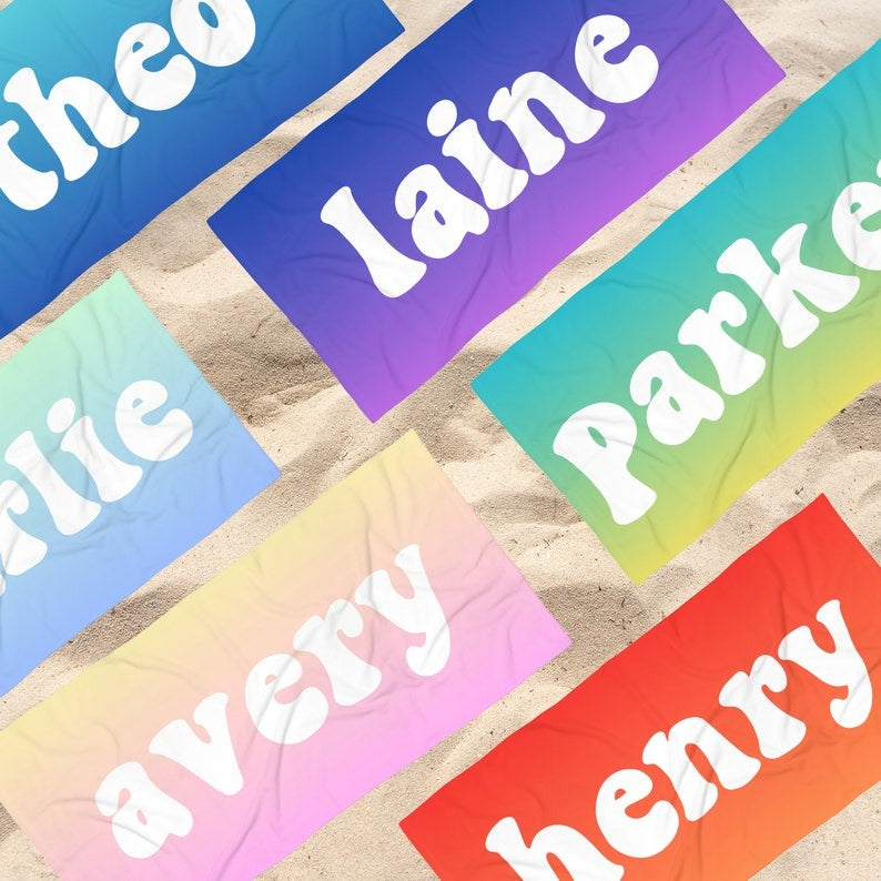 - Luxuriously soft, premium quality, quick-drying beach towels with personalized names