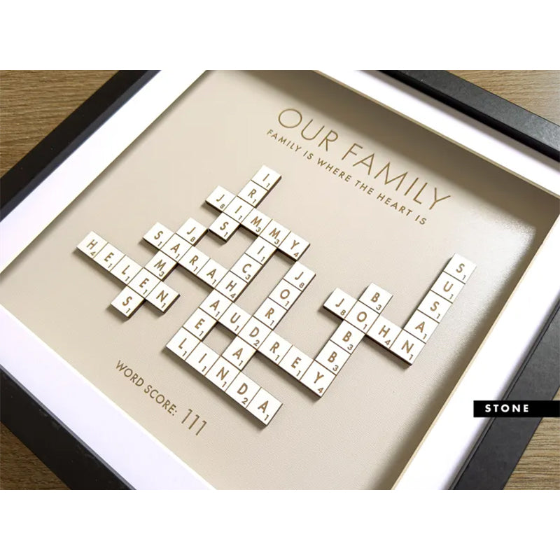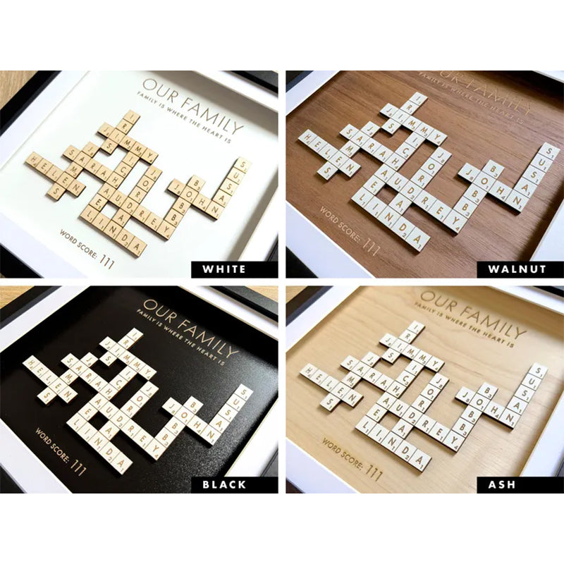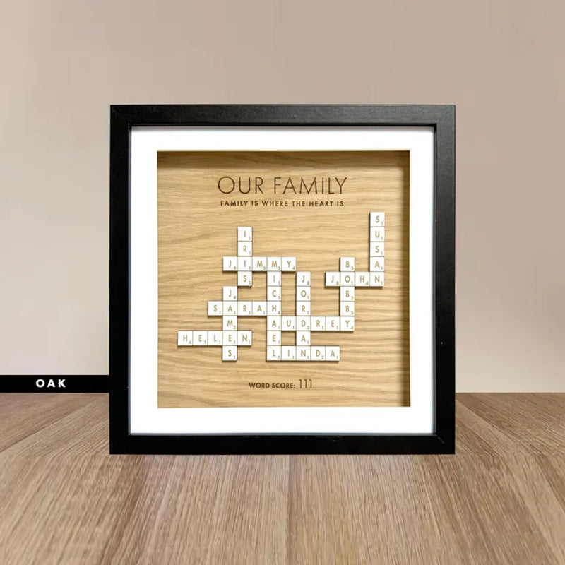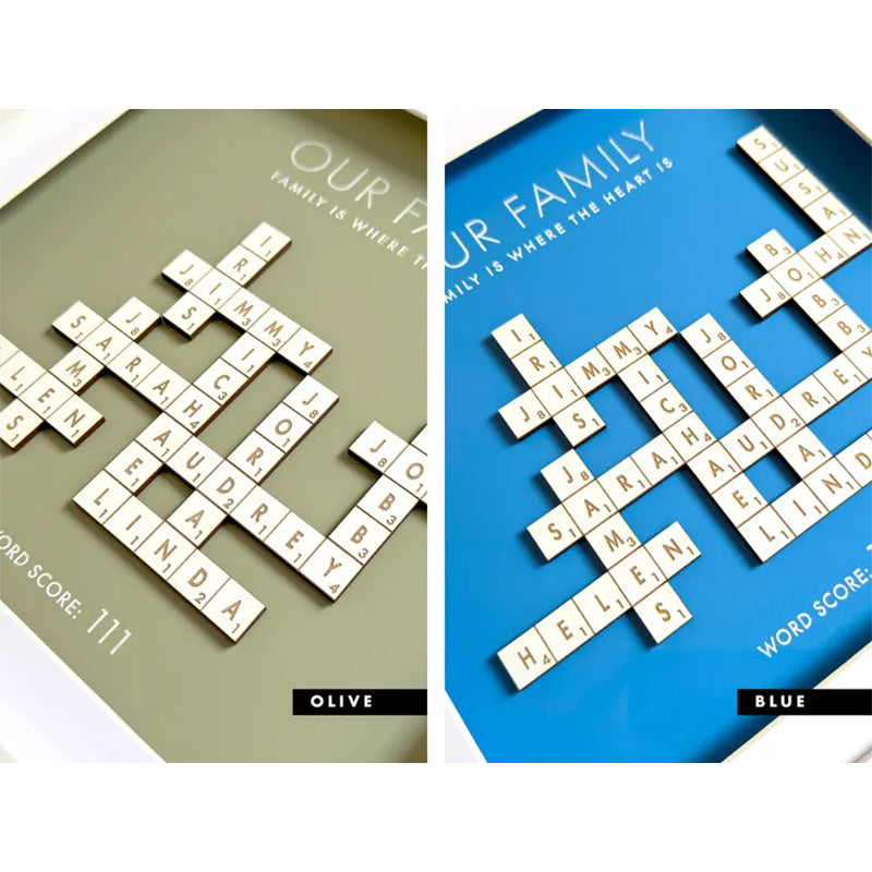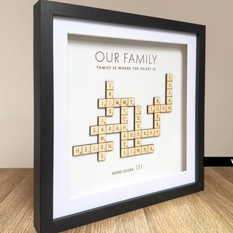 Each frame is handcrafted using high-quality materials to ensure longevity. Personalise your family tree in Scrabble style today and elevate your living space with this one-of-a-kind art piece.