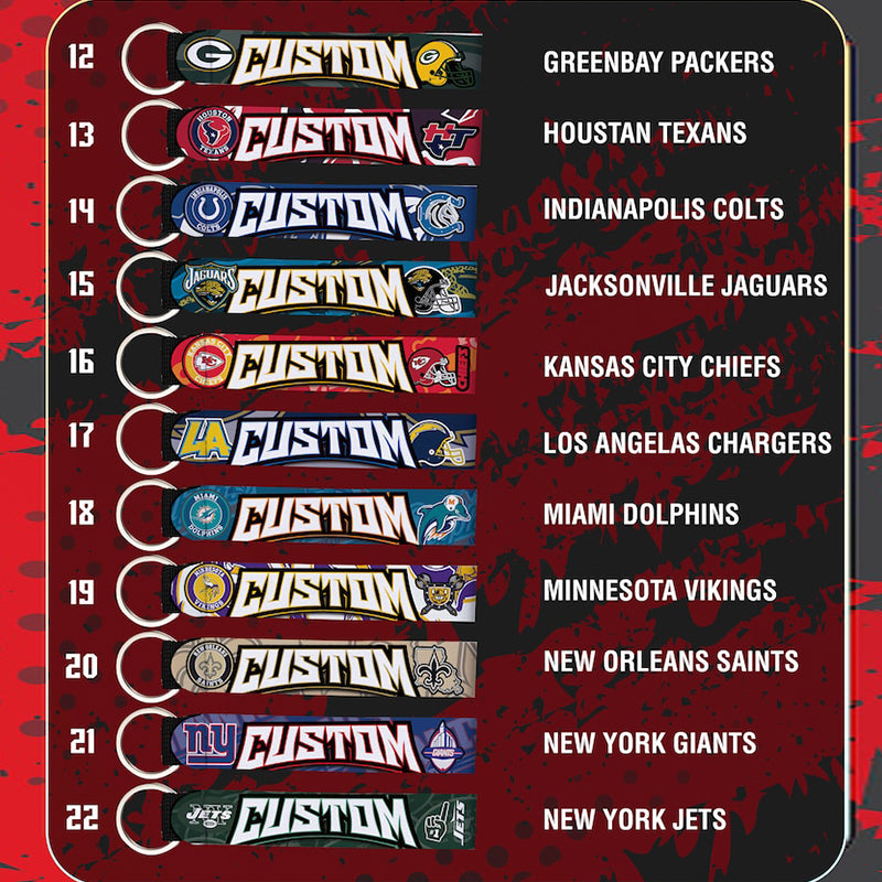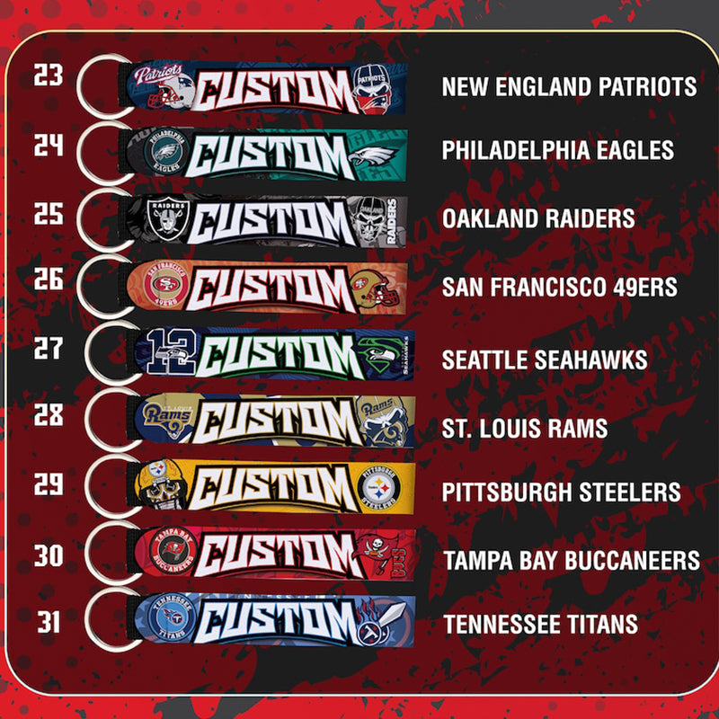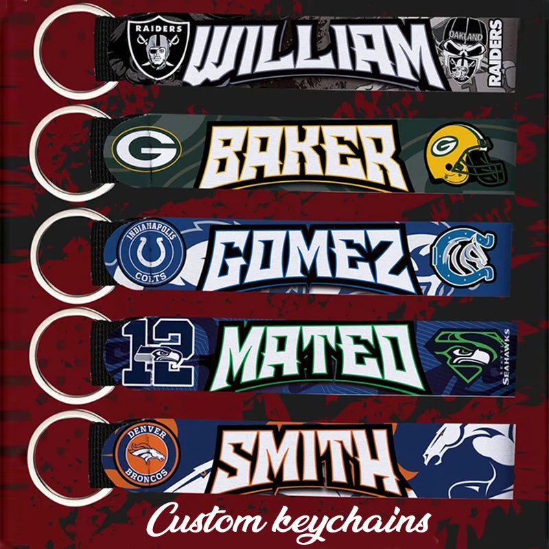 NFL Personalized Football Keychains | Seahawks | Raiders | Giants | Patriots | 49ers | Chargers | Jets | Packers | Giants | Ravens| Falcons