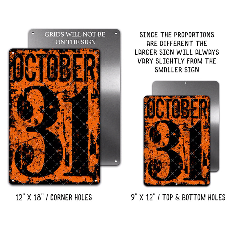 Available in 2 sizes. The larger sign is 12"x18" and has 4 corner holes. Both are printed on rust free aluminum which is safe for indoor or outdoor use.