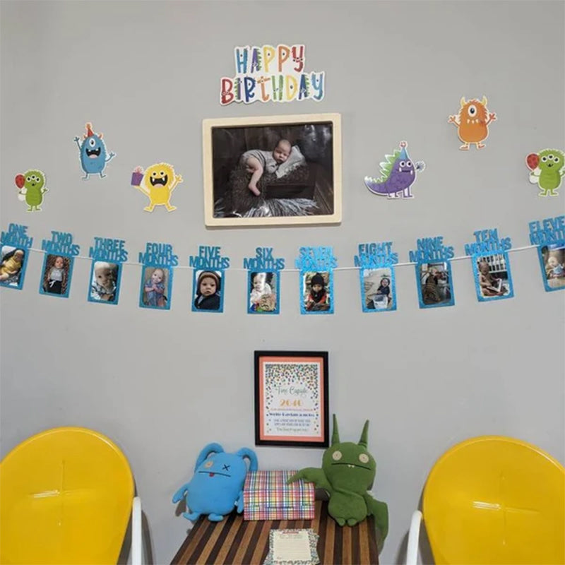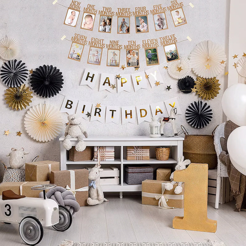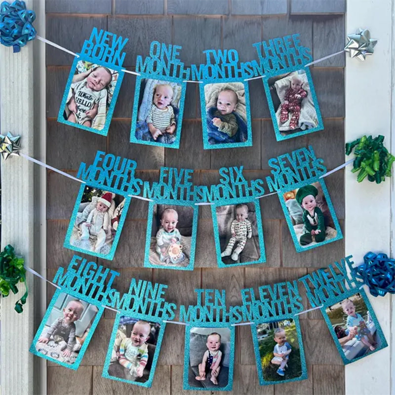 🎈NO MORE FALLING PICTURES DURING THE PARTY – Our banner comes with photo insertion frames that will make your preparation simple and quick! Simply slide in the 4R photo (4"x6") to the frame and you're ready to show the beautiful banner with the cutest photos to your friends and family. (Others are giving glue to attach)