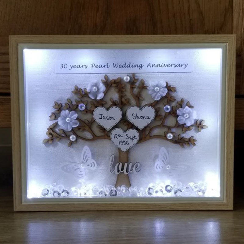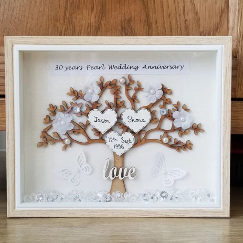 Beautiful handmade personalized wedding anniversary family tree frame, perfect for your home decor or as a gift.