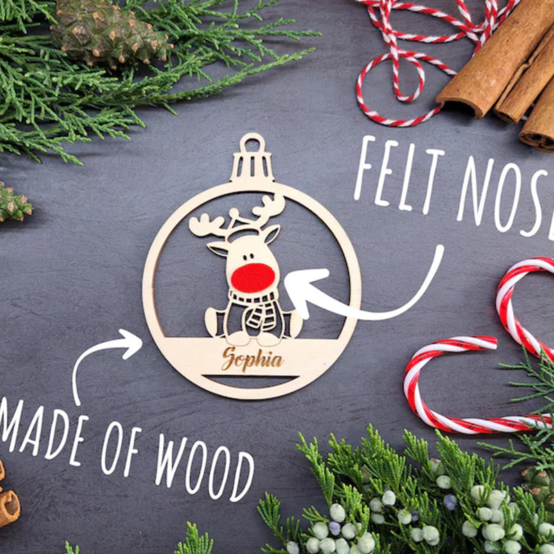 • Personalized Christmas tree decorations Reindeer with soft felt red nose will be a great gift for friends and family. A Christmas tree decoration along with a treat will be an original and inexpensive gift if you need to congratulate several colleagues, classmates or a larger number of friends.