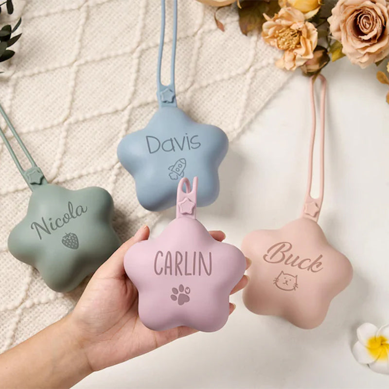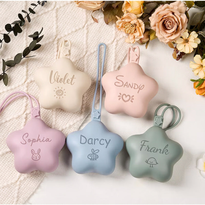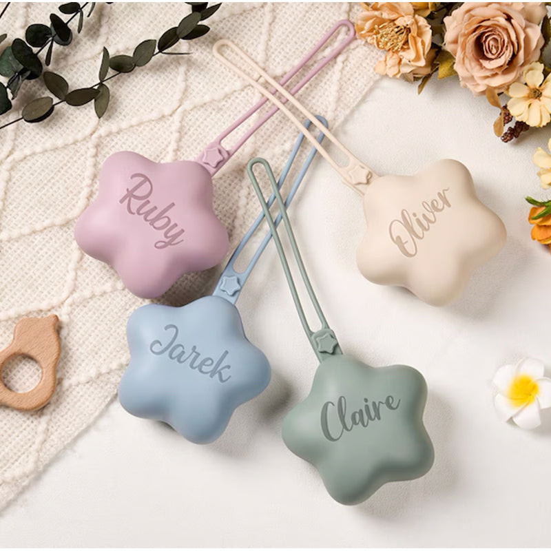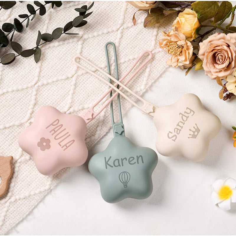 This star-shaped silicone pacifier bag is stylish and practical, offering ample space for pacifiers and other small items.