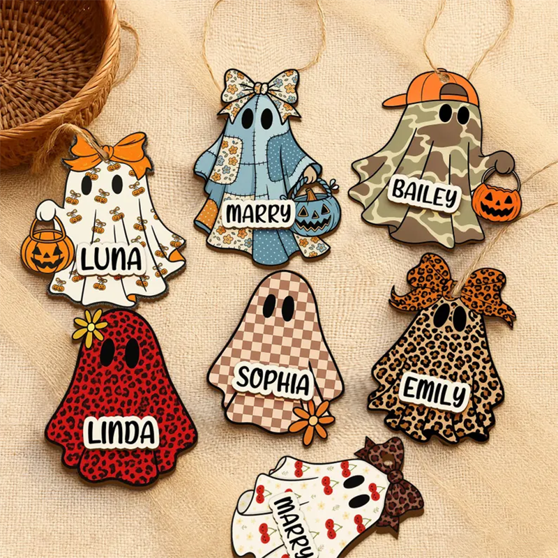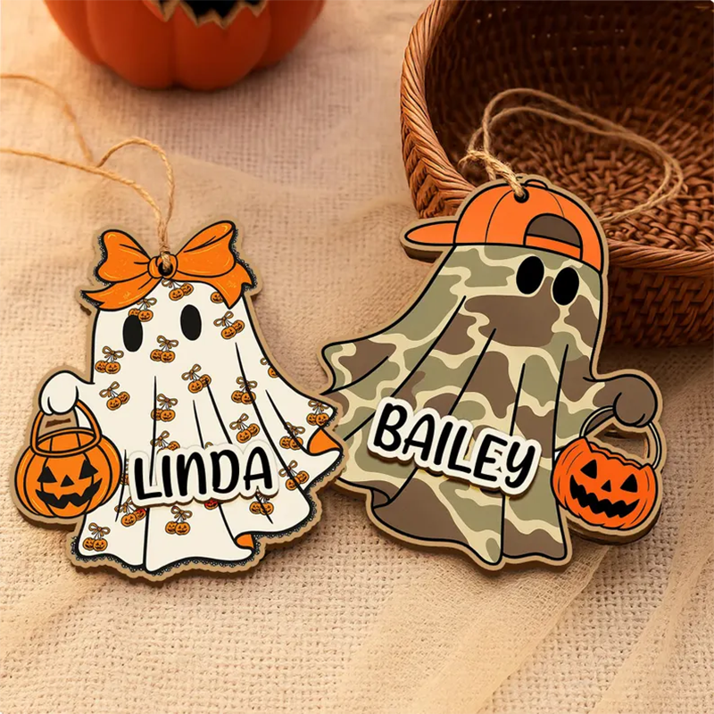 šPersonalized 3D Ghost Halloween Basket Tag, Custom Wooden Name Tag, Boo Basket Name Tag for Kids, Halloween Ornament, Halloween Basket Decorš