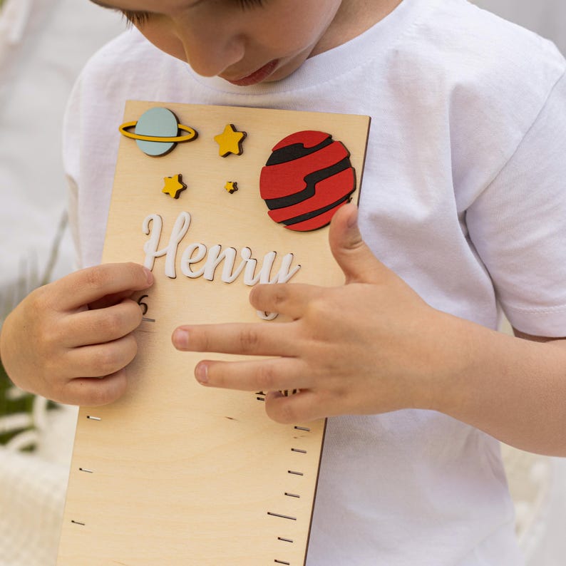 Our personalized acrylic growth chart is designed to help you beautifully track your child’s growth while complementing your nursery decor. With customizable markers, it’s never been easier to keep an accurate and stylish record of milestones. This growth chart is a functional and elegant addition to your home.