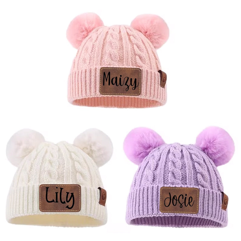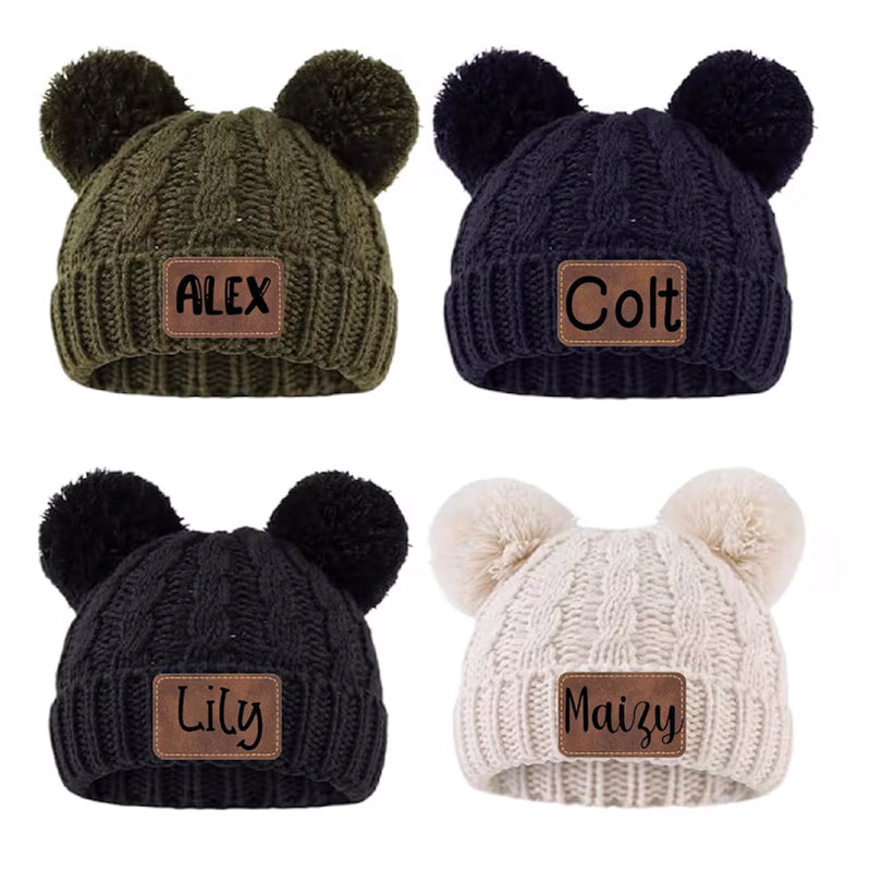Keep your little one warm and stylish with our adorable baby beanie featuring cute double poms and a custom-engraved leather patch! Made from premium soft acrylic, this double-knit hat is designed to keep your baby snug, cozy, and protected from chilly weather.