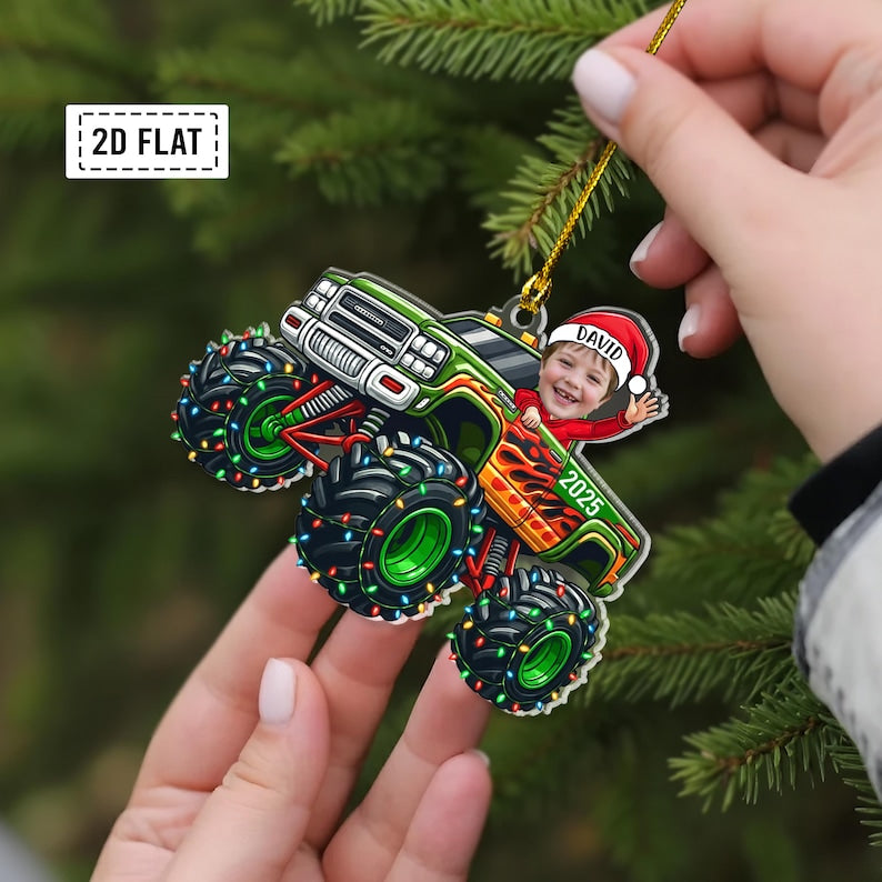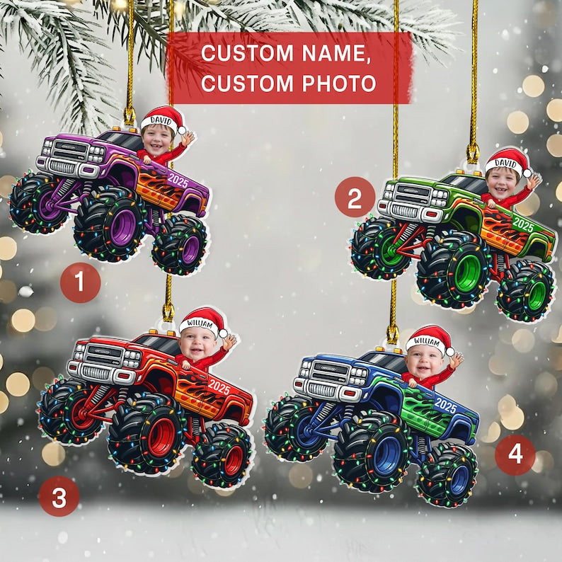 Personalized Baby Monster Truck Photo Flat Acrylic Ornament
