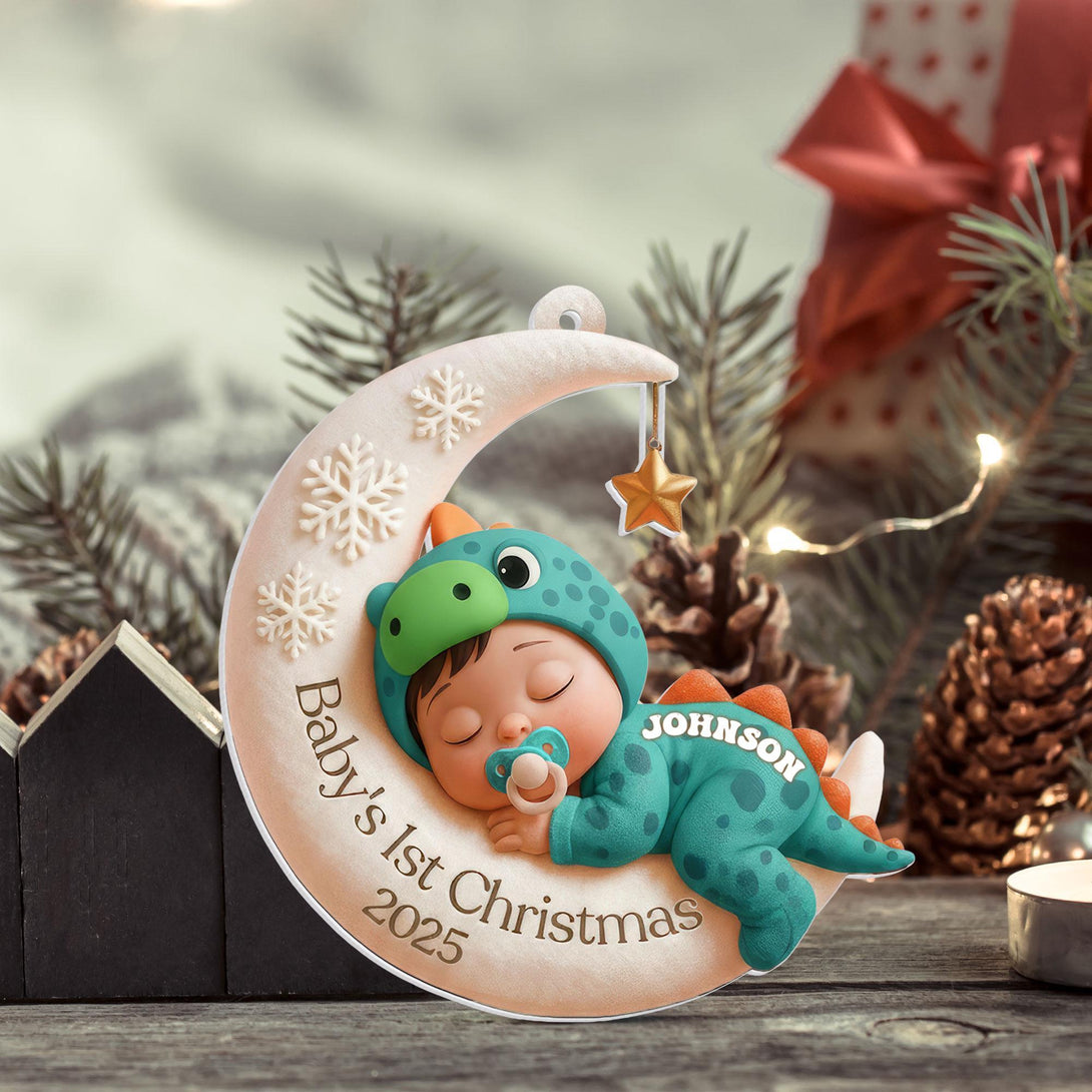 Personalized Baby's First Christmas Ornament Acrylic Moon Keepsake