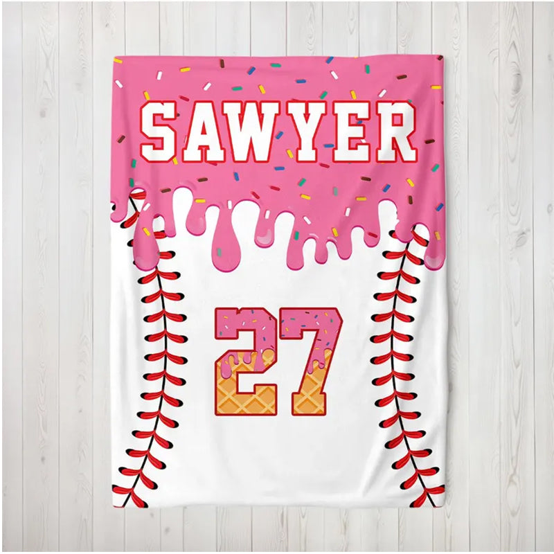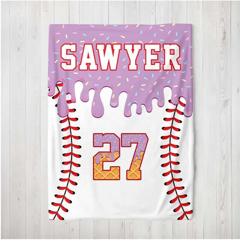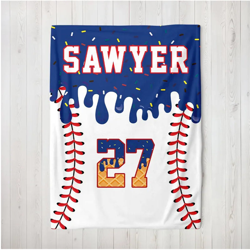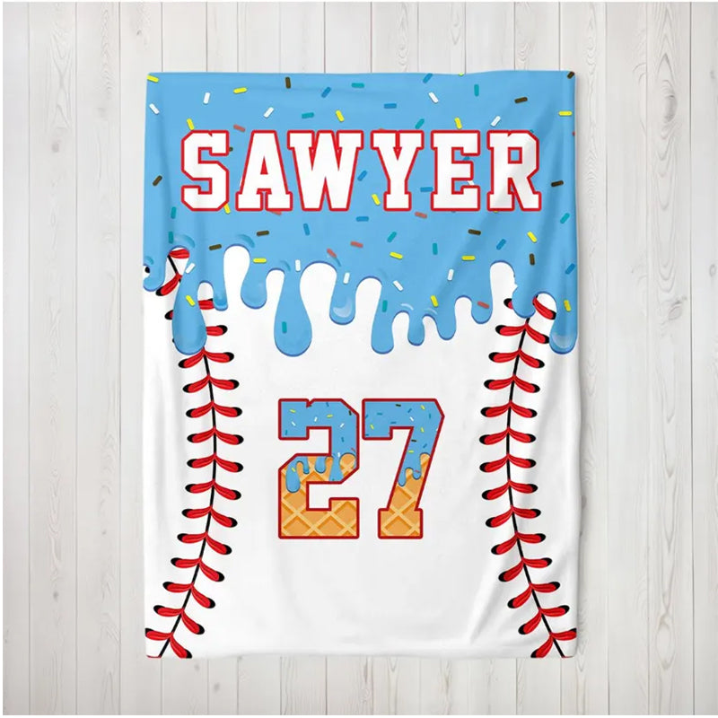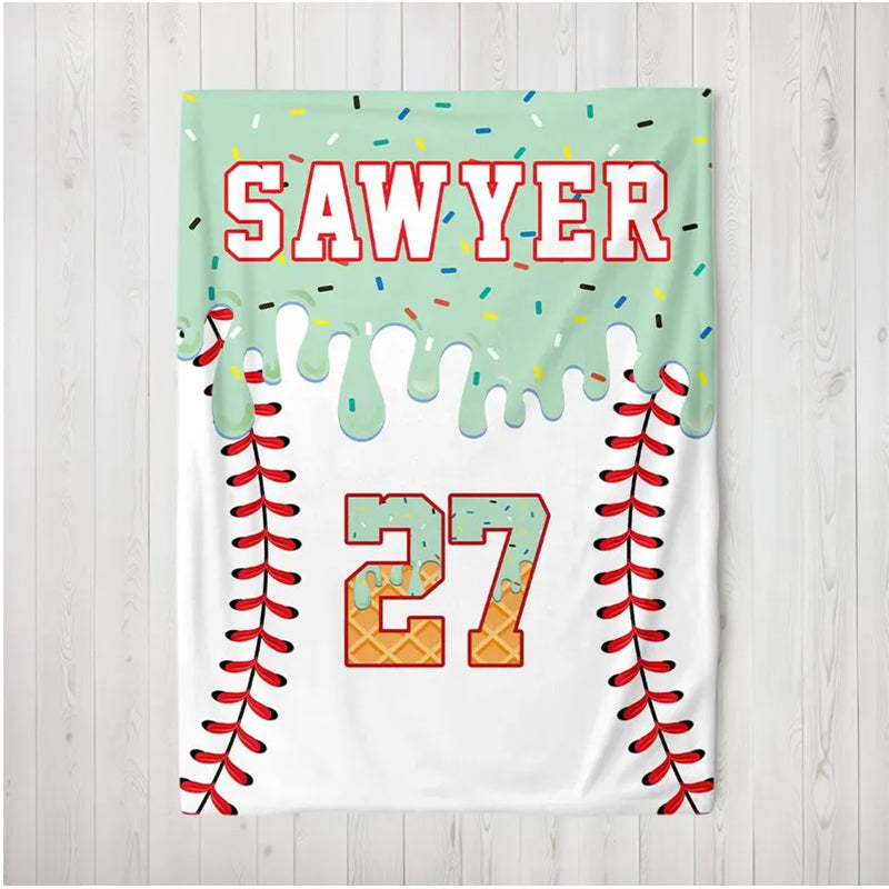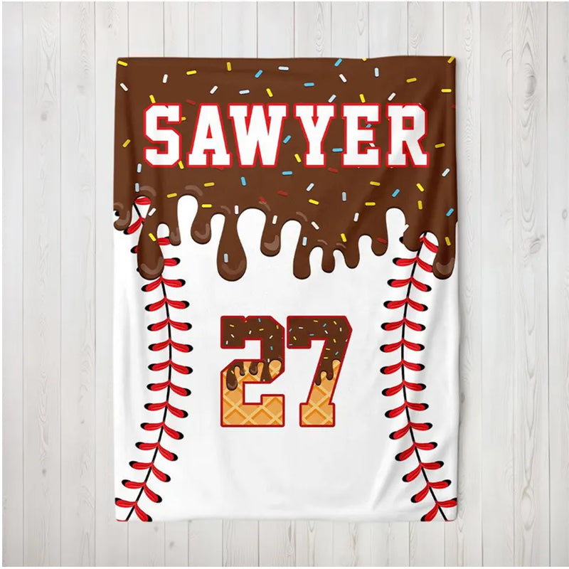 Personalized Baseball Blanket: Ice Cream Drip Design, Custom Name