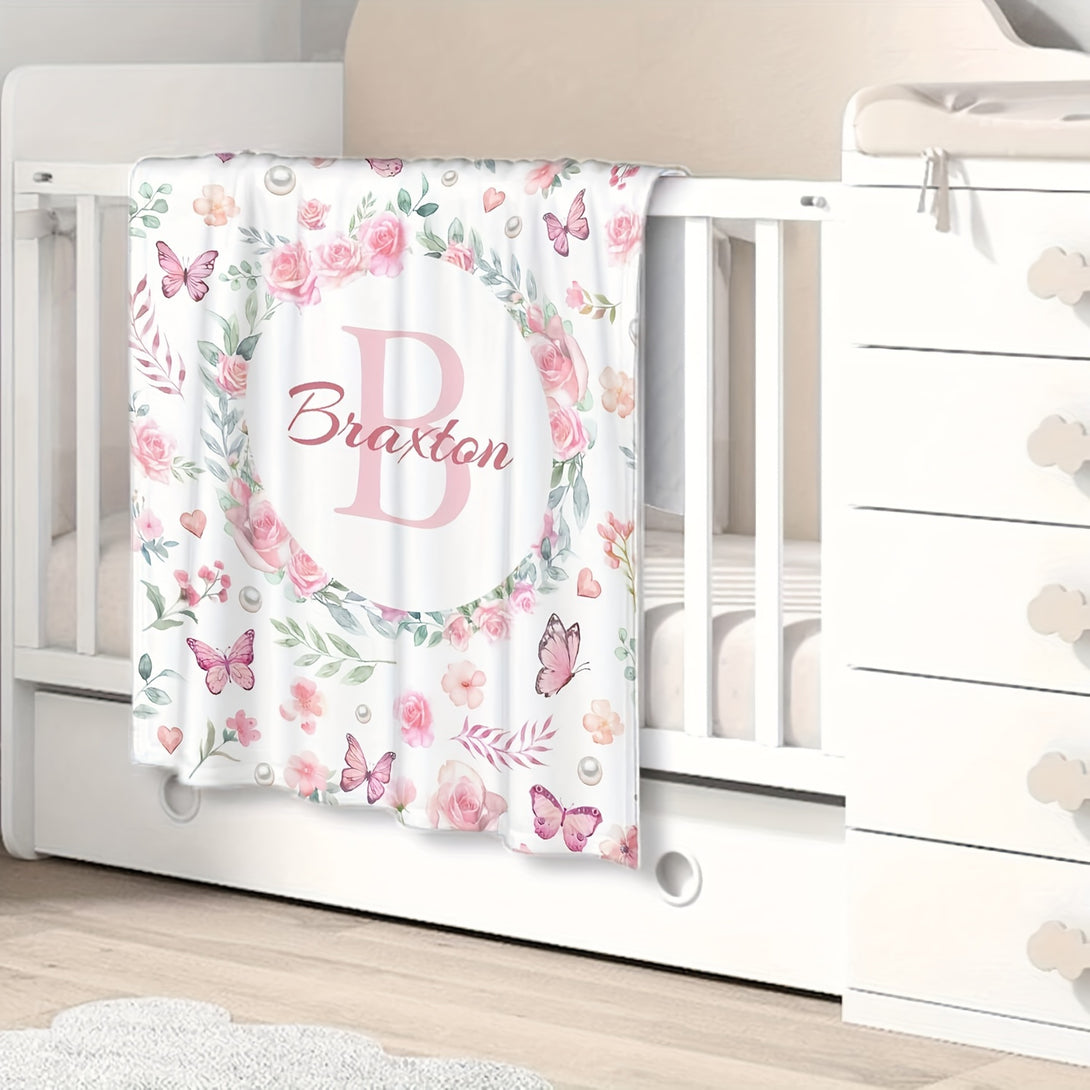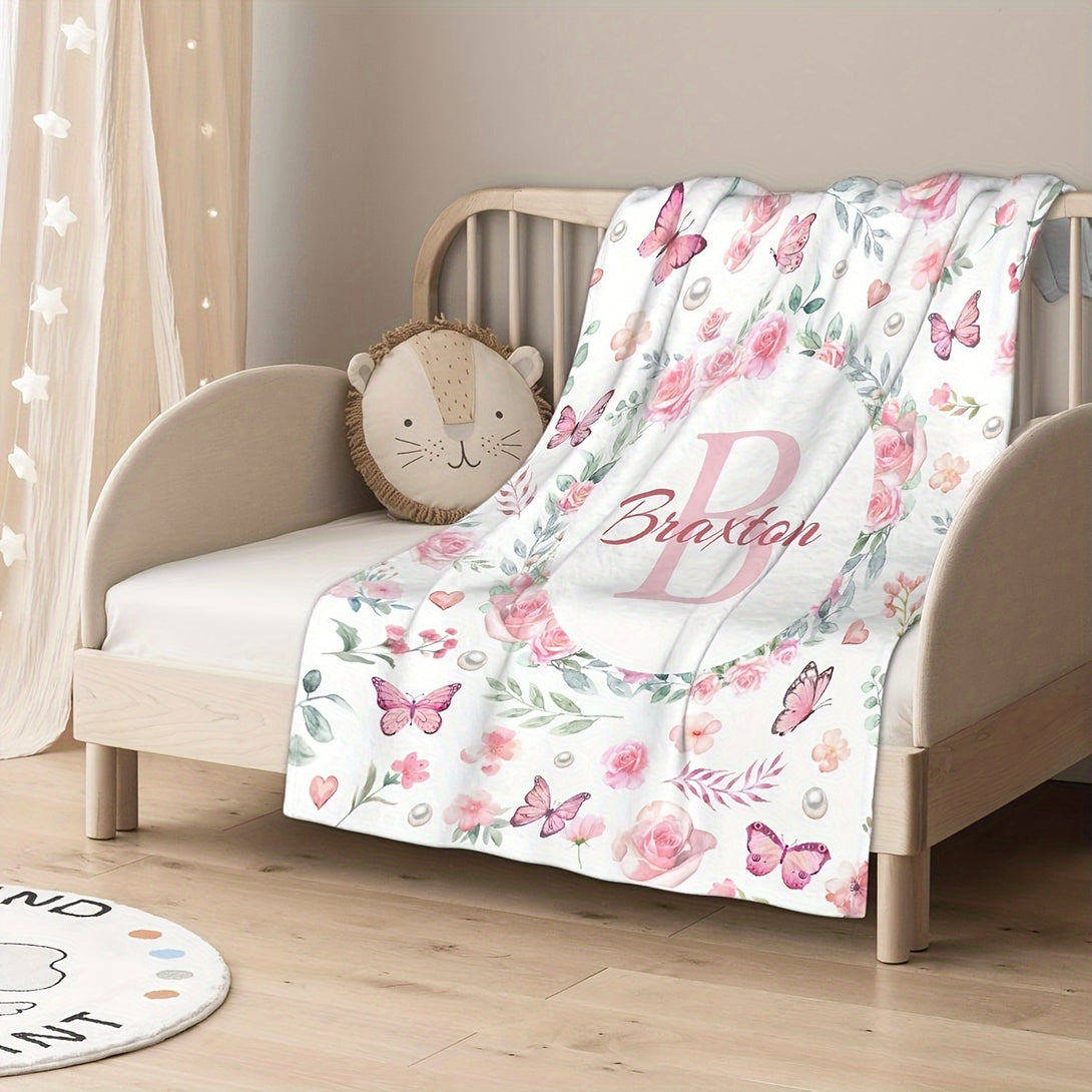 Personalized Butterfly and Floral Print Blanket