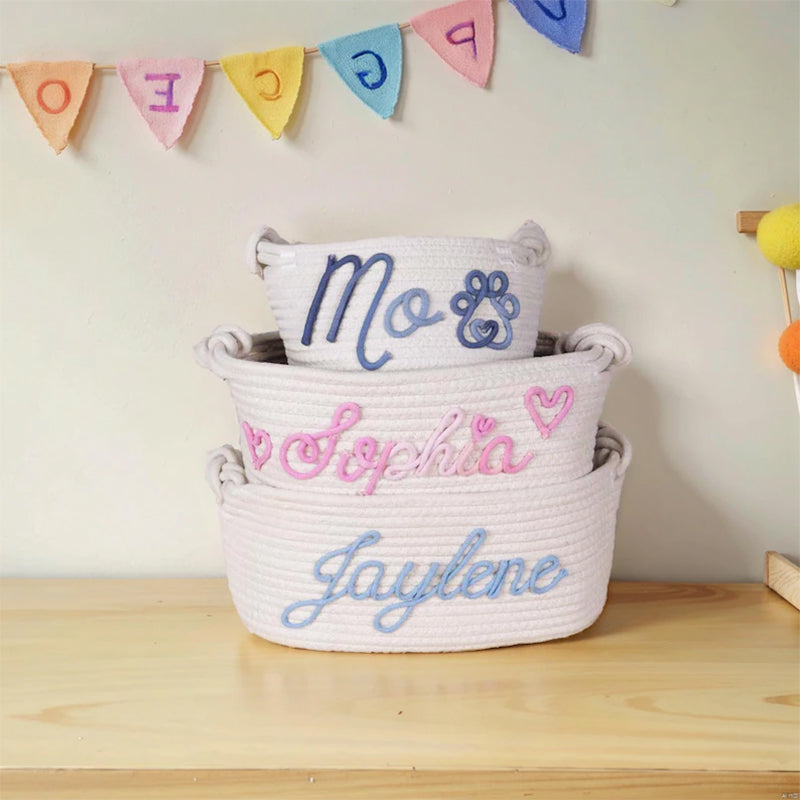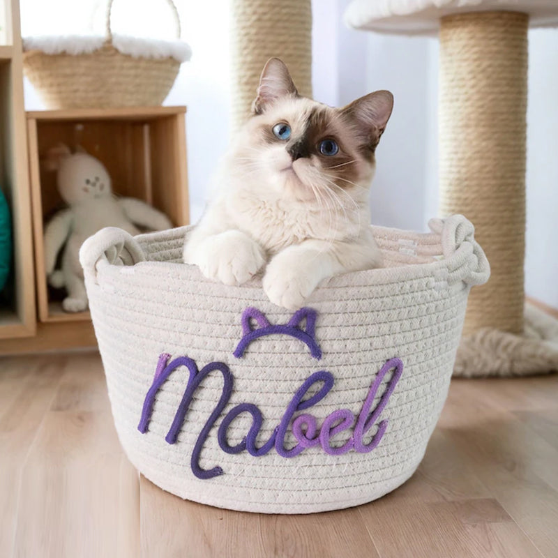 Personalized Cat toy basket Custom kitten treat bin New Cat Gift New Kitten treat storage Custom Cat name toy crate cat organizer
