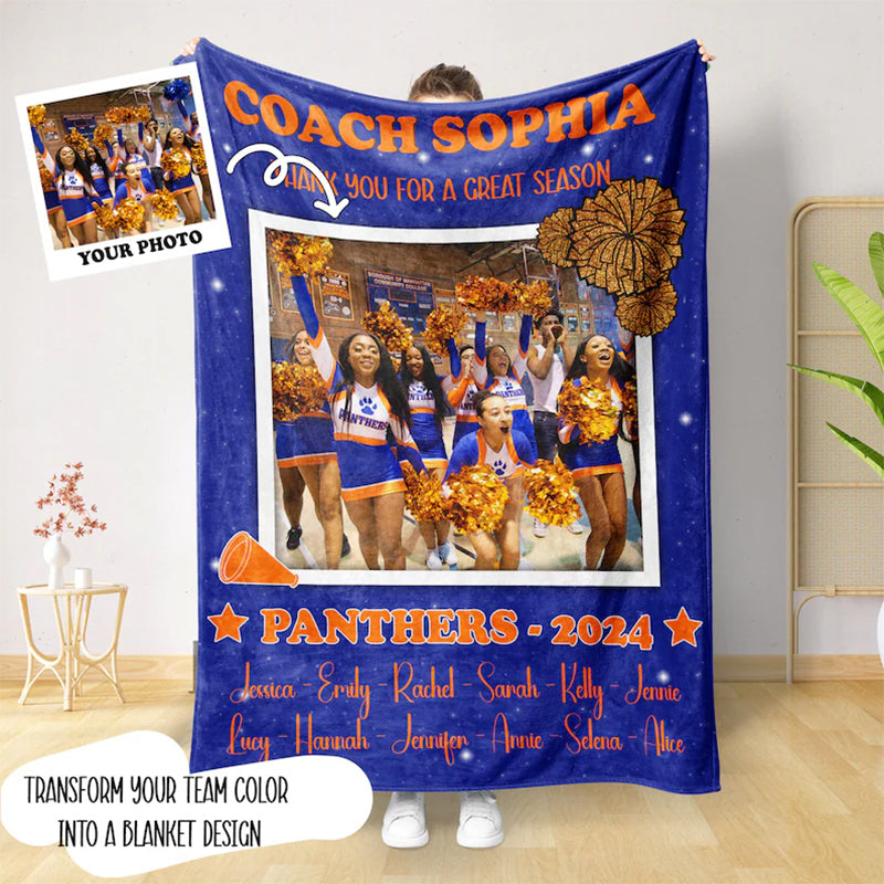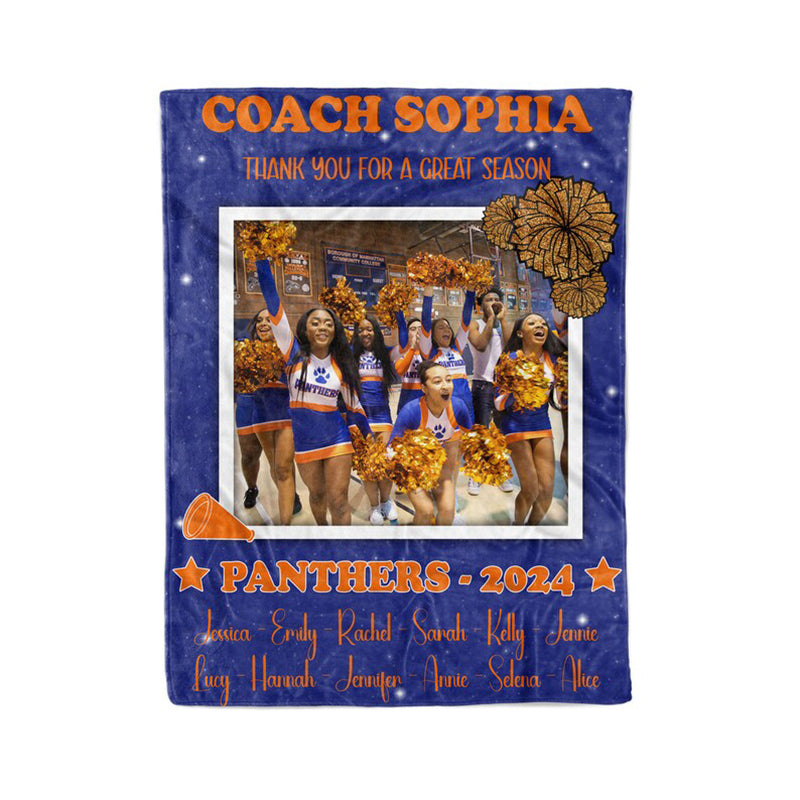 Personalized Cheerleading Blanket for Coach - Custom Colors
