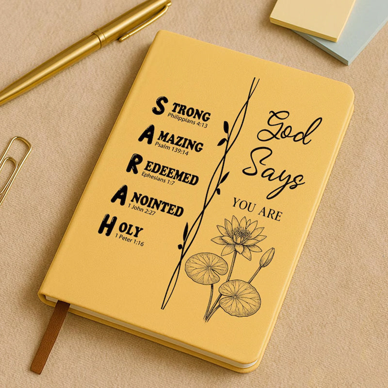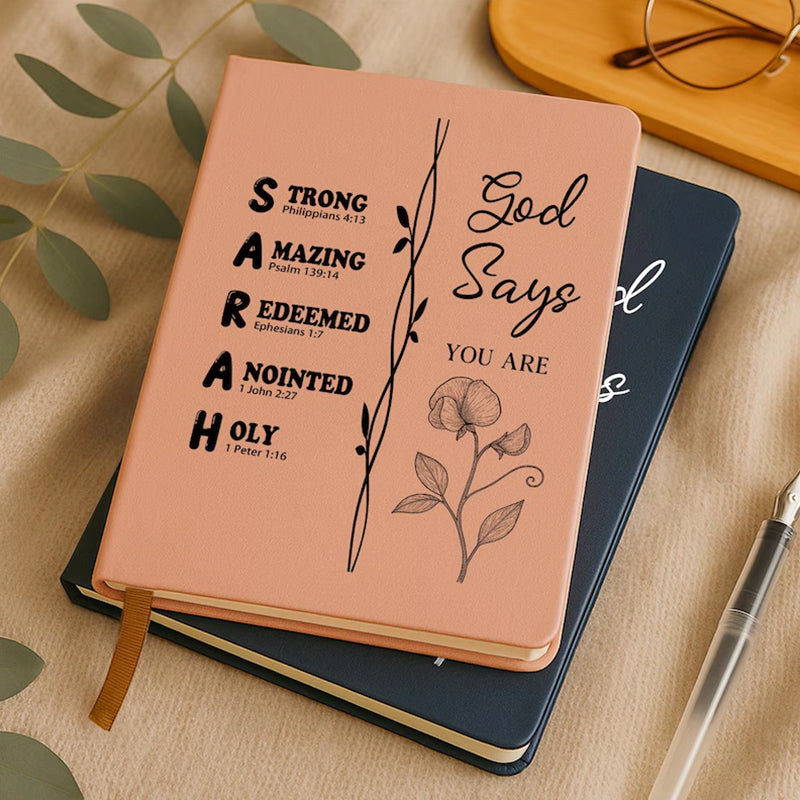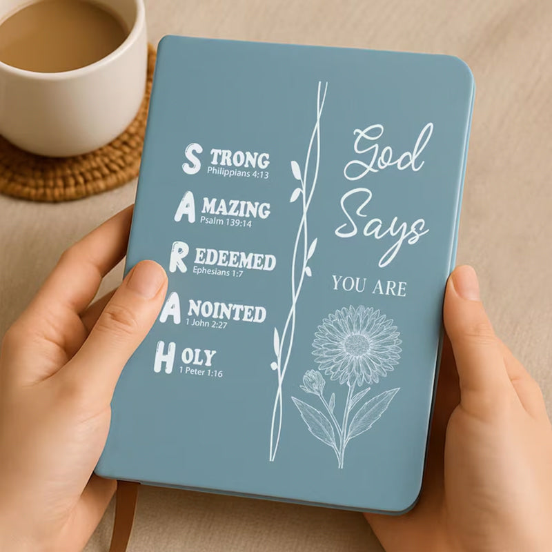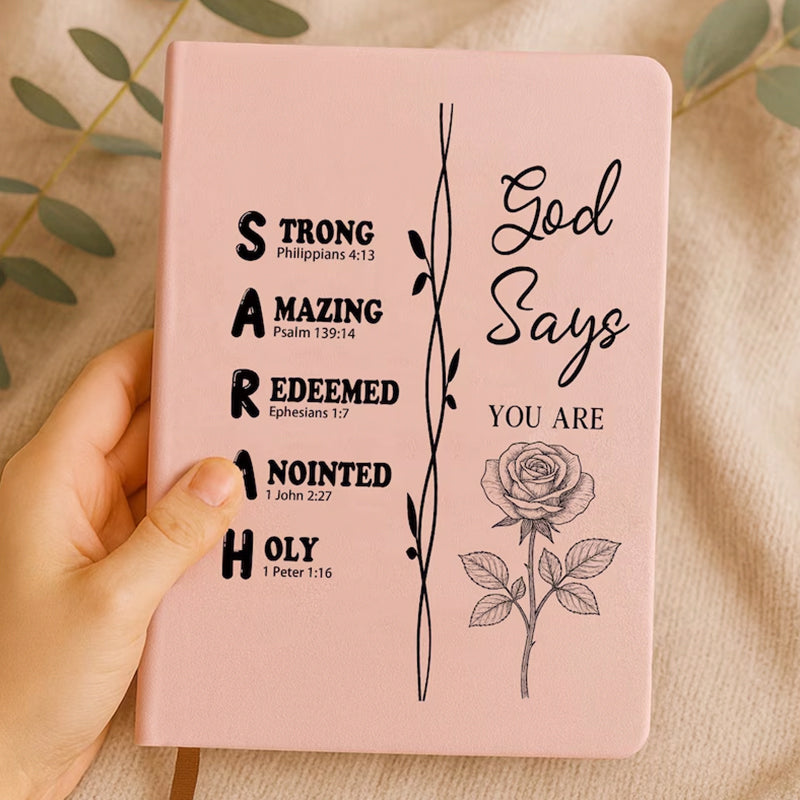 Personalized Christian Name Journal With Bible Verses, Custom Scripture Gift for Women, God Says You Are Bible Verse Journal, Religious Gift
