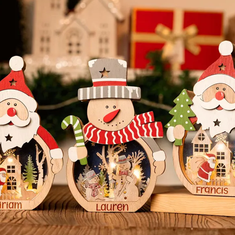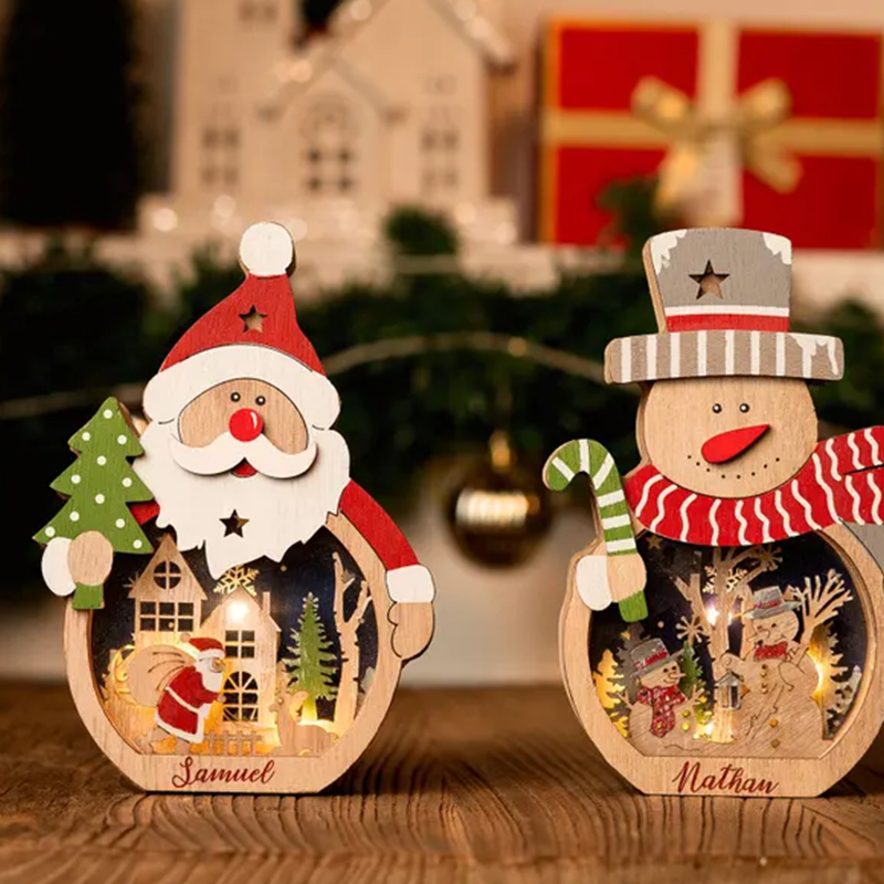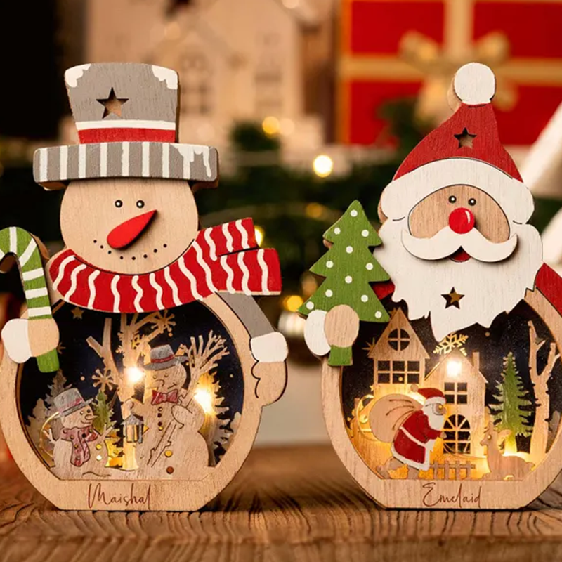 šIn this warm Christmas season, let our personalized wooden Christmas lights become an indispensable part of your home, adding a unique charm and warmth to your holiday celebrations. Each light is carefully made by experienced craftsmen, using high-quality environmentally friendly wood, which not only ensures the durability of the product, but also highlights the natural and rustic beauty.