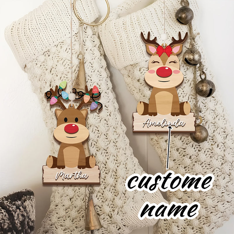 Custom Christmas Name Ornament: Reindeer Stocking Tag