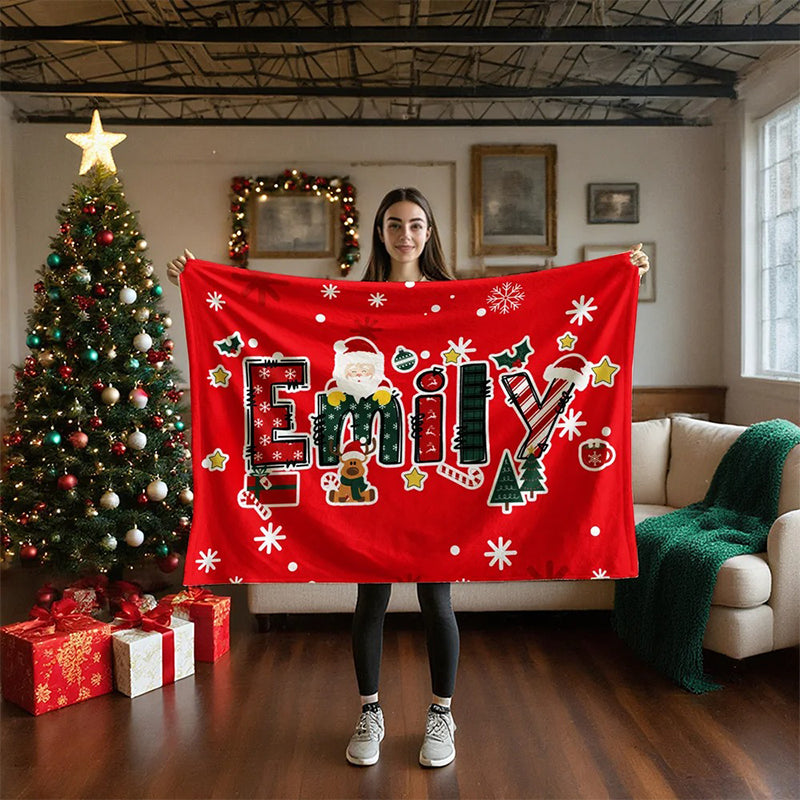 Personalized Christmas Reindeer Santa Claus Name Blanket