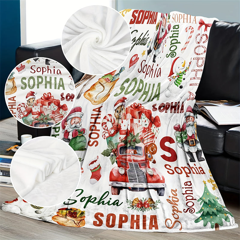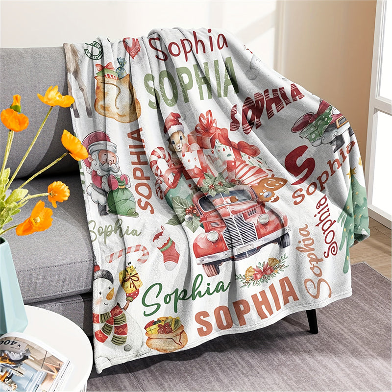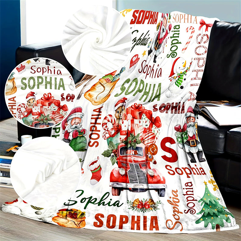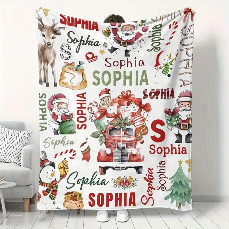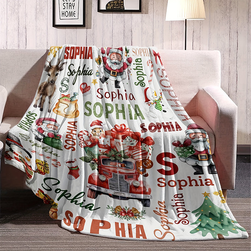 Personalized Christmas Santa Reindeer Custom Name Blanket