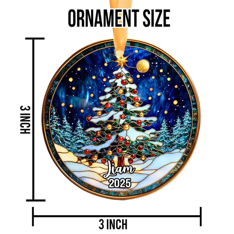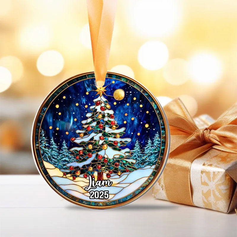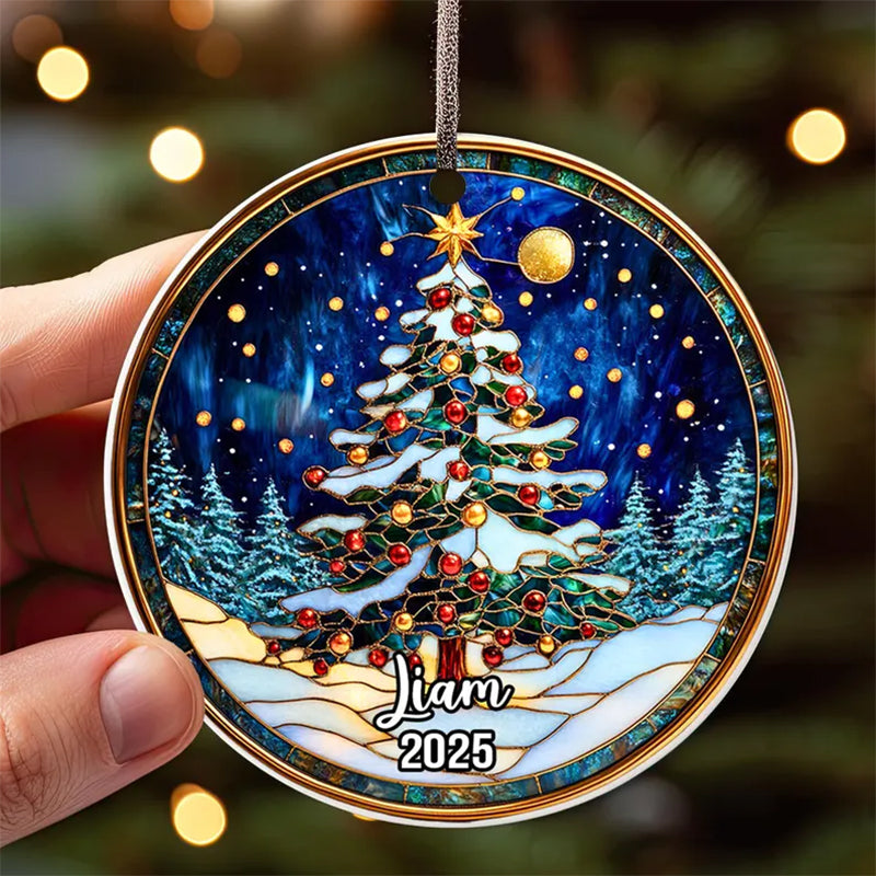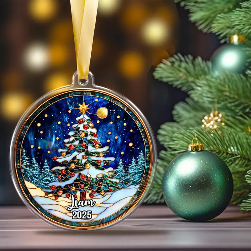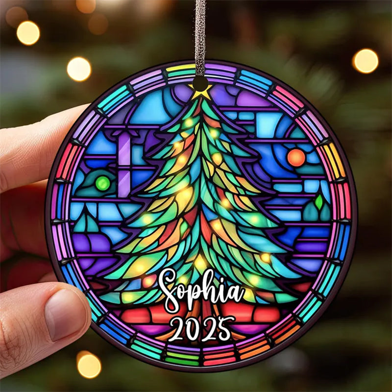 ๐ Personalized Stained Glass Christmas Tree Ornament 2025 โ Custom Name Holiday Keepsake, Handmade Premium Glass Gift