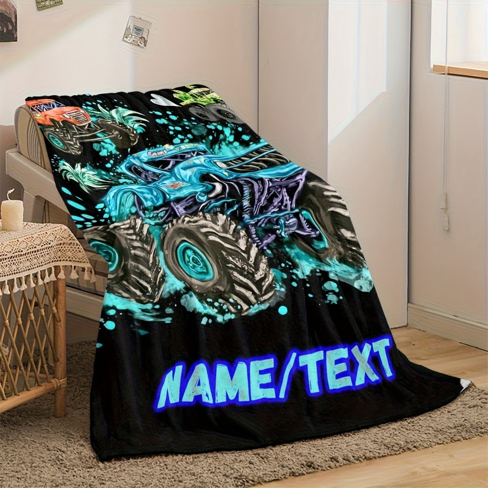 Customizable Gamer's Flannel Blanket with Vibrant Neon Gamepad Design