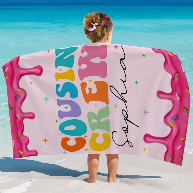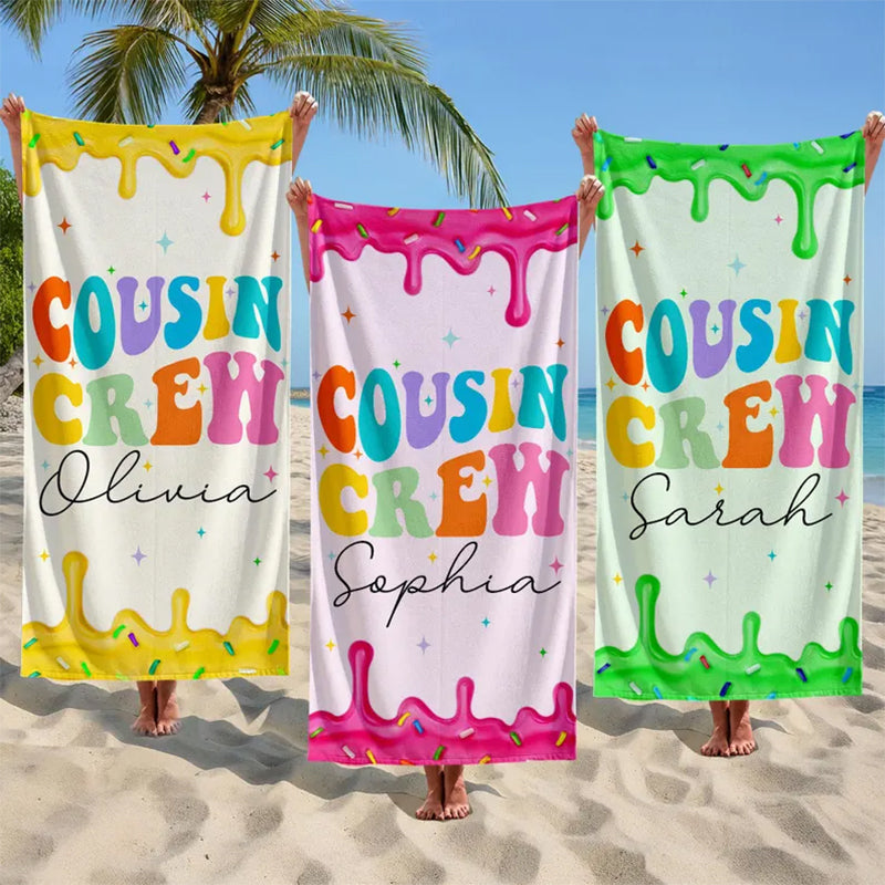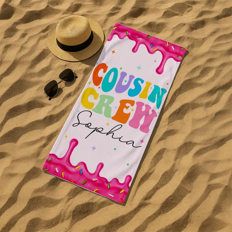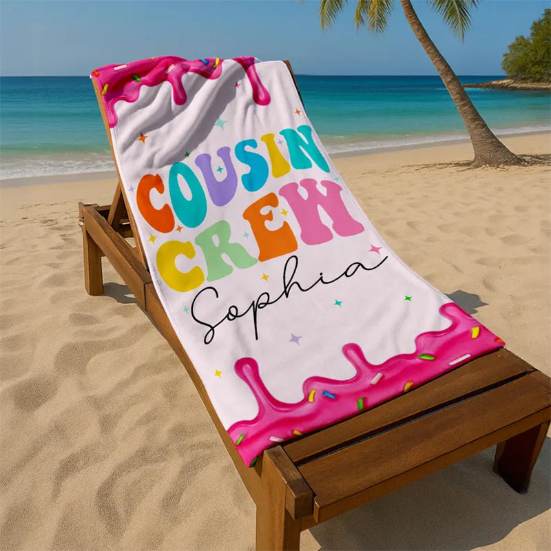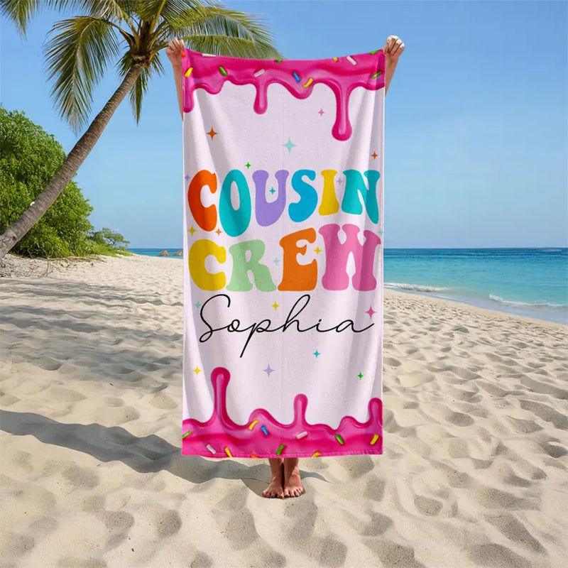 Personalized Cousin Crew Beach Towel, Cousin Squad Gift