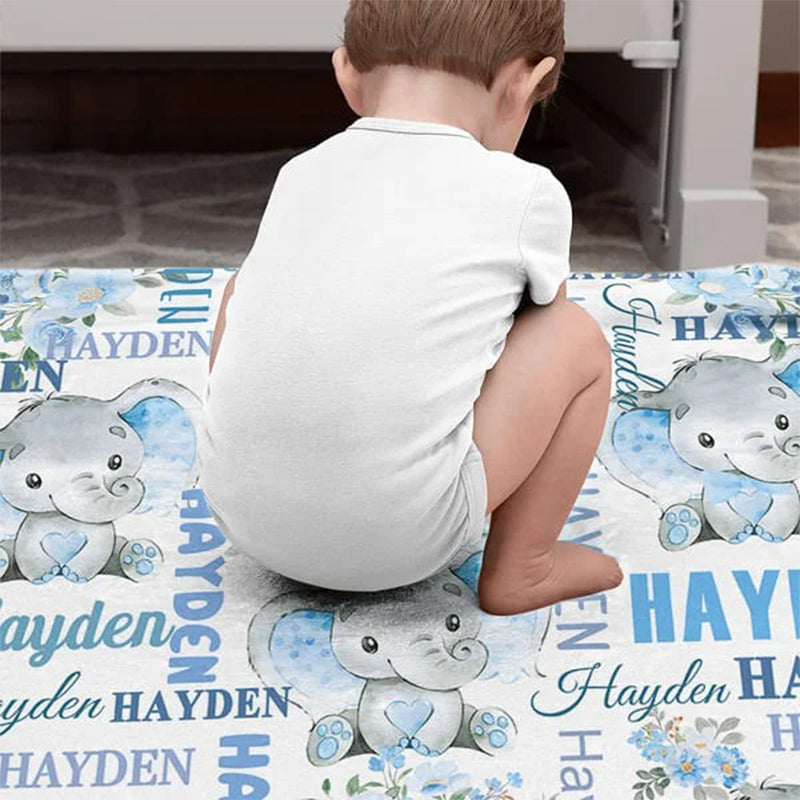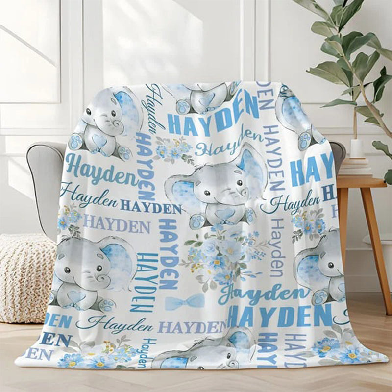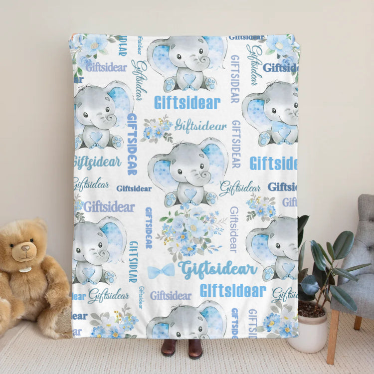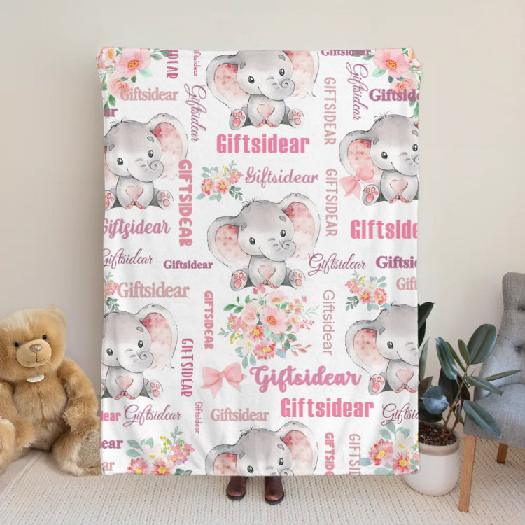 Personalized Cute Pink Blue Floral Elephant Blanket